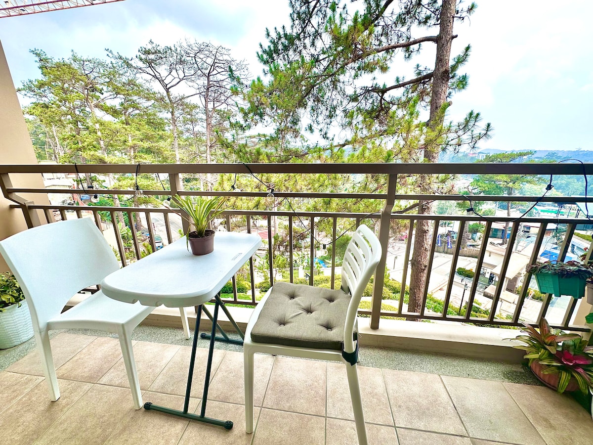 Our condo unit offers serene and beautiful mountain views quite similar to the Italian Alps dotted with quaint homes. A safe and secured environment to actually live in the clouds with the scent of pines. 9 mins. from Burnham Park, Session Road and Sm Baguio. Near Camp John Hay, The Mansion, Wright Park, Botanical Garden and Mines View. Basement parking with a fee. On jeepney and taxi line. Centralised hot water. Elevator Enjoy the unreal cool and foggy weather from the terrace viewing deck