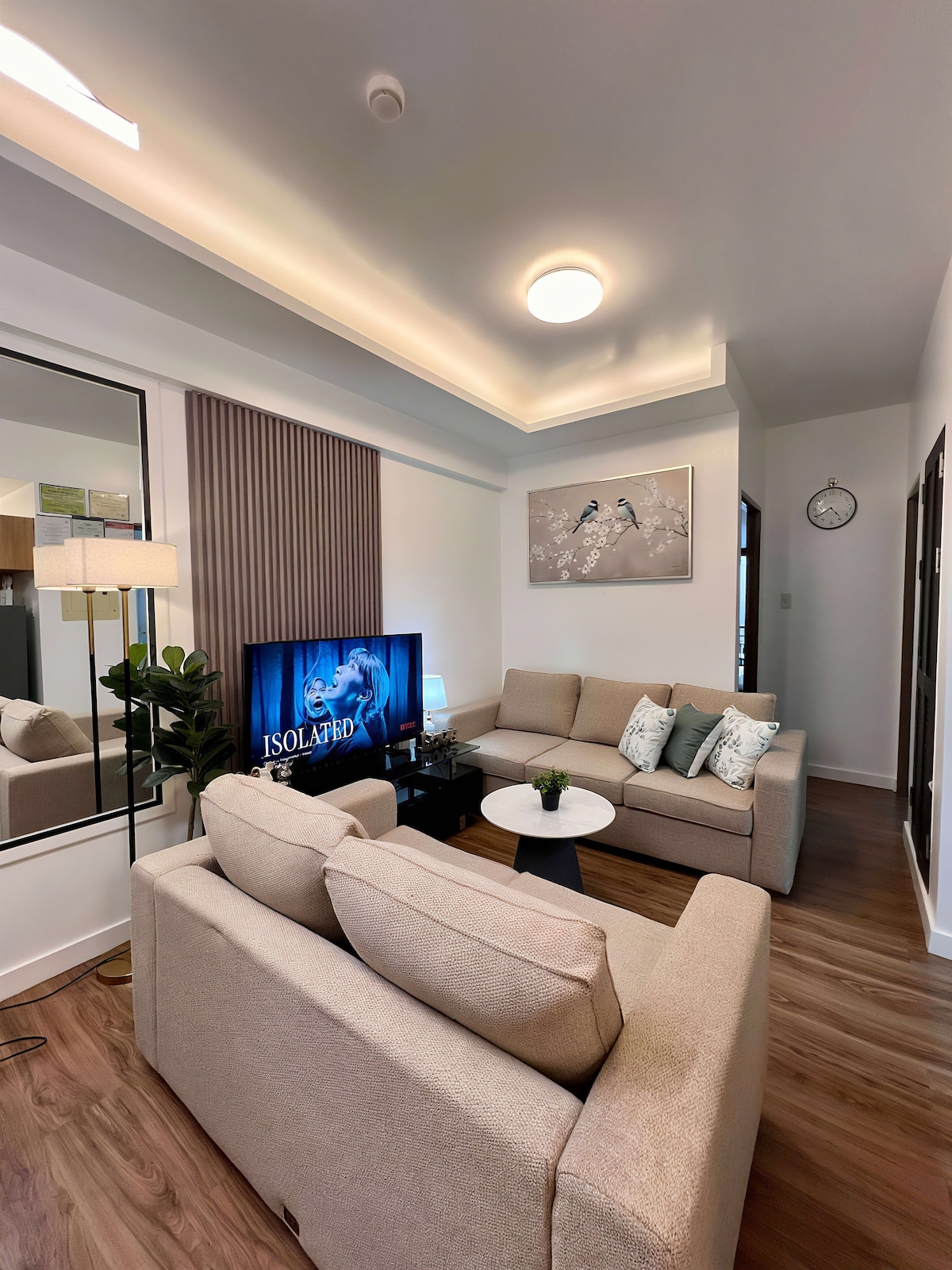 Experience modern comfort at The Aston Executive Suite, a luxurious 2-bedroom serviced apartment in Baguio City. Wake up to stunning mountain views from your balcony while enjoying complimentary Nespresso coffee. Relax with Disney+ and Netflix on hotel-quality beds and pillows. Conveniently located near top attractions, the suite offers self-check-in, free parking, high-speed Wi-Fi, and a secure, tranquil stay.