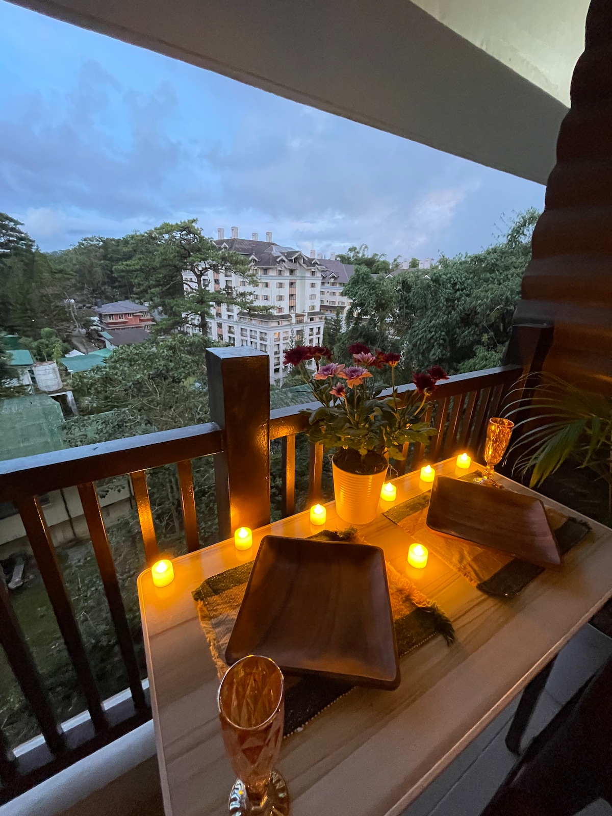 A chic 1 bedroom apartment offering the best view of downtown Baguio. Guests can experience the beautiful sunrise, downtown Baguio's flickering night lights or any of the city's spectacular fireworks display. Located on the jeepney/taxi line, it's a 10 min ride to Burnham Park, Session Road, Baguio Market and Lourdes Grotto and 15 min to SM Baguio and the bus station.