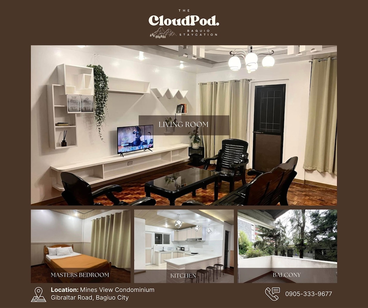 Before booking, PLEASE KINDLY READ our details. 😊 Why you should book now. 👉 Family-friendly 👉 Cozy & modern 2 bedrooms with convertible living room 👉 1 Full Bathroom 👉 HI-SPEED WIFI 👉 Two 4K TVs: 50” (living room) & 43” (bedroom) w/ NETFLIX & Disney+ 👉 Full kitchen 👉 Balcony w/ STUNNING CITY & MOUNTAIN VIEW 👉 Near City center 👉 2-3 min. to John Hay & Victory Liner Bus 👉 Impeccably clean guesthouse! 👉 PARKING FOR 1 CAR/VAN ONLY N.B.: Strictly maximum of 6-8 pax