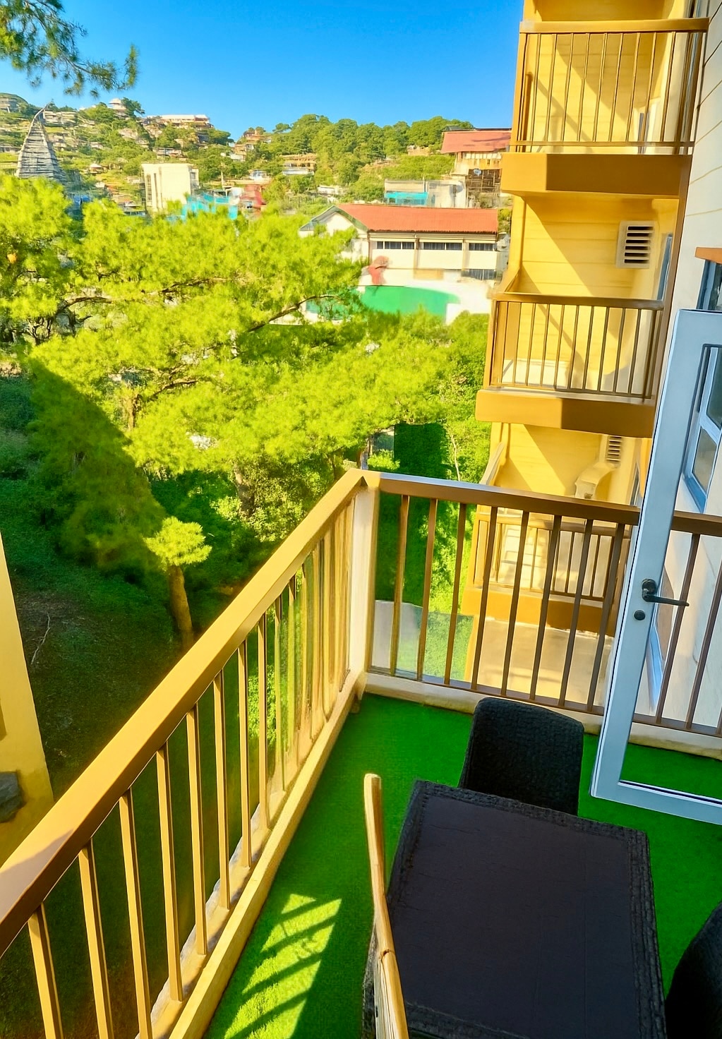 A furnished 4-bedroom suites ideal for 8 persons. The place exhibits modern architectural design with glass walls overlooking pine trees and mountain ranges. This includes one master’s bedroom with its own T&B in the ground floor. Two more bedrooms are located in the third floor, also with their own T&B in each room. In the basement, one bedroom with a bunk bed again and its own T&B plus one driver's quarter.