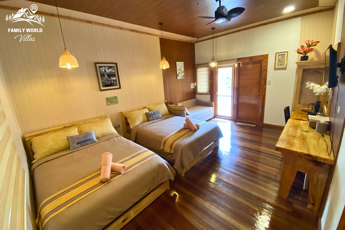 Family World Villas, a centrally located retreat just a 3-minute walk from Burnham Park. We offer luxury spaces where you can relax and unwind, making it ideal for families and groups seeking both convenience and comfort. Enjoy our spacious veranda or the outdoor bonfire pit for a classic experience here in the City of Pines. With its prime location, we ensure convenient access to taxis, walkable cafes, restaurants buffet, and nearby one stop shop.
