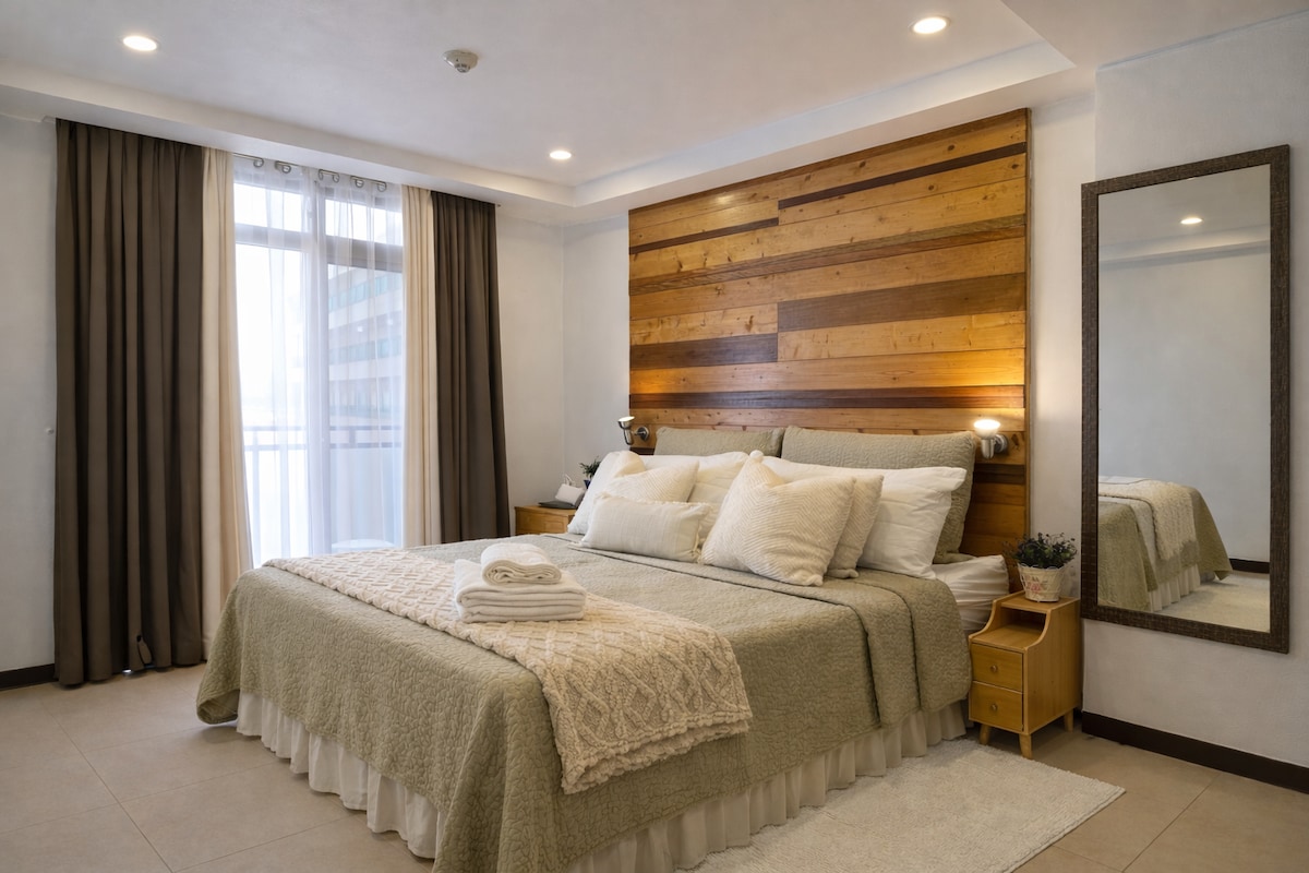 A modern condominium located in Baguio City, providing you a comfortable place to stay with beautiful views of the mountains and the city. Offering comforts and space that allows guests not just to stay but to live! Amenities: - Dedicated Parking Slot - Viewing Deck - Hot and cold shower - 50" Smart TV (with Netflix) - Coffee Bar - Fiber Wi-Fi - Microwave Oven - Refrigerator - Induction Cooker - Cookwares - Plates, glasses and eating utensils - Ceiling fan in both bedrooms