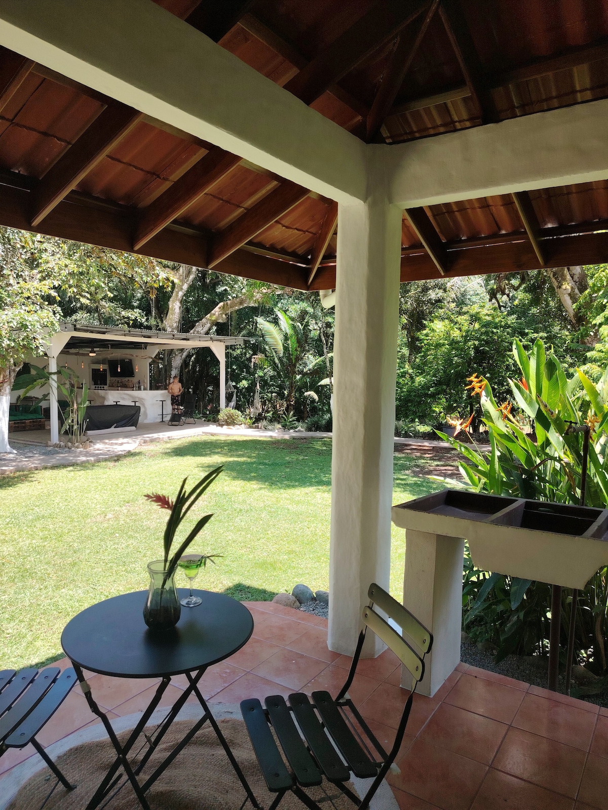 Enjoy your tropical vacation in Uvita, Bahia in our lovely gardenhouse! We welcome you at semiwild property with lots of wildlife. It's homestay, we live next door. If you are looking for more personal experience with locals and get a taste of our busy neighborhood, while travelling, this is your oppurtunity! This simple casita has bedroom, well equiped kitchen, bathroom and terrasse, where you can enjoy your drink and observe the birds, iguanas, chickens. It's 10 min walk to the beach.