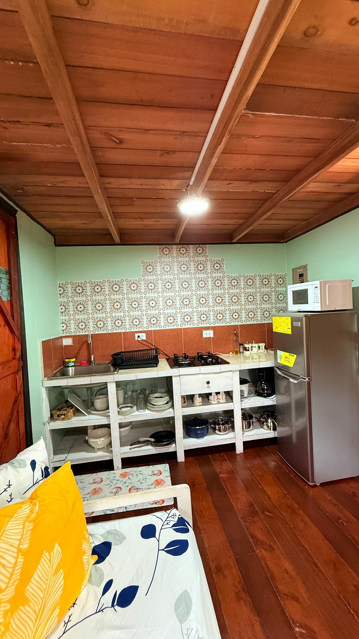 Conecta con la naturaleza de Uvita de Osa en este acogedor studio privado junto al bosque con vista al mar donde los amaneceres y atardeceres abrazan este tranquilo lugar. Localizado muy cerca de las playas, ríos, cascadas, restaurantes y todos los servicios. Disponible para dos personas, cama Queen, cuarto de baño privado, ducha con agua caliente, A/C, una pequeña refrigeradora, coffee maker, TV y WIFI. El parqueo es amplio, seguro y acceso privado con portón accionado a control remoto.