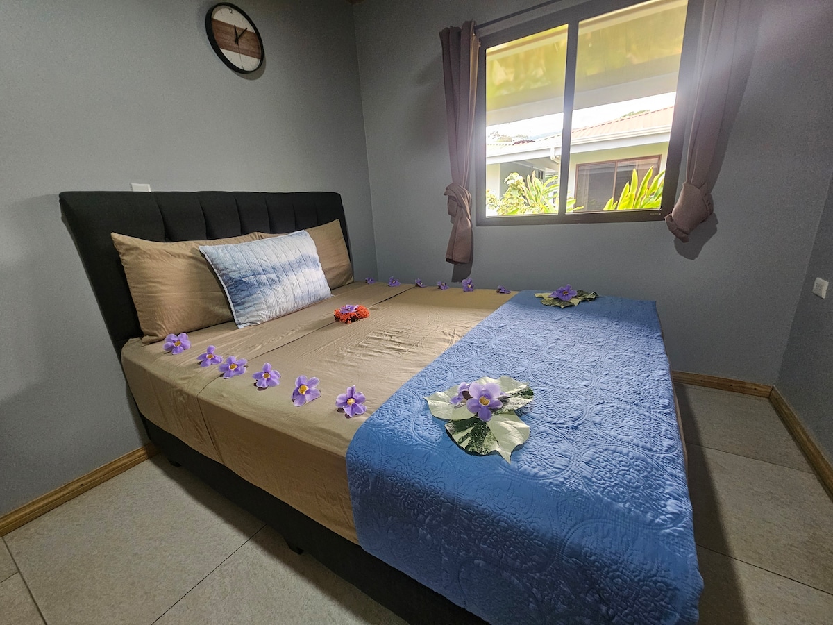 Estamos ubicados a 500 mts de la entrada al Parque Nacional Marino Ballena, ofrecemos un apartamento totalmente equipado para 1 o 4 personas con finos acabados, completamente seguro y acogedor . incluye sala, cocina completa, baño, dos habitaciones con una cama Queen cada una, aire acondicionado, televisión con servicio streaming y WIFI gratis de fibra óptica, también contamos con piscina y parqueo gratis y seguro.