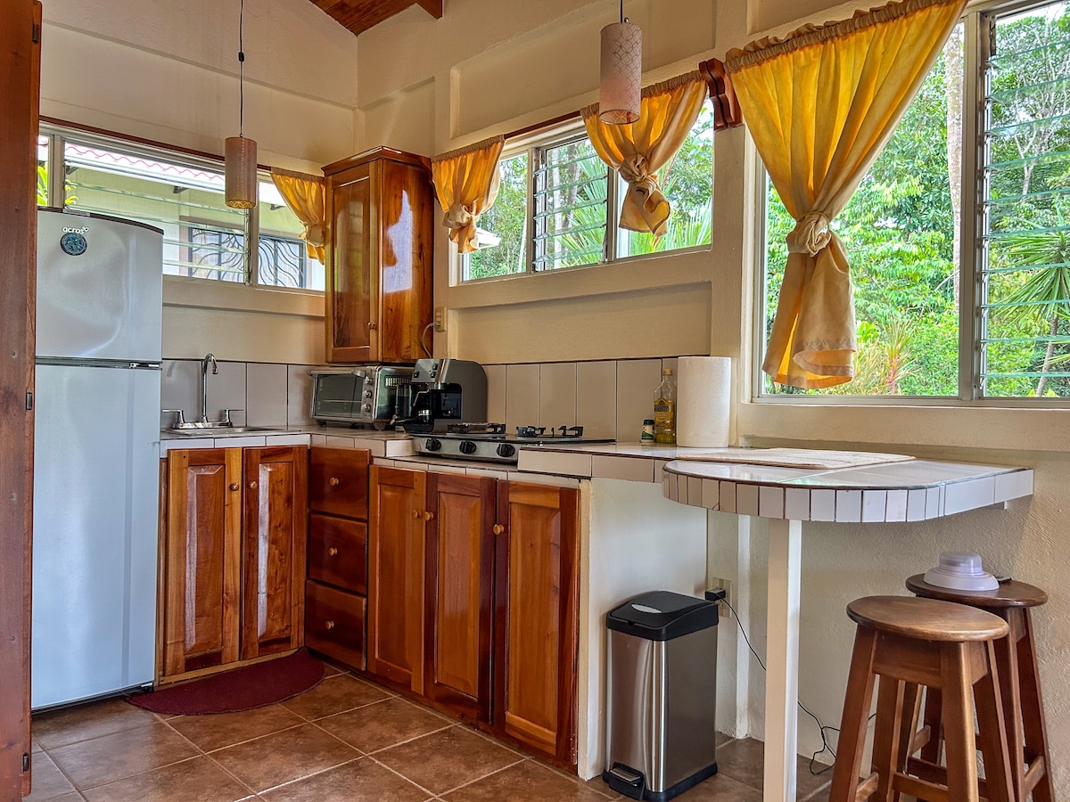 Birds of Paradise houses are a peaceful, family-friendly, modern, fully equipped, surrounded by nature, on a secure and private property. We offer a shared pool, natural gardens, WiFi, parking space for 2 cars maximum, and more than 60 amenities. There are delicious restaurants, shops, supermarkets, drugstores, car rentals, bike and surf board rentals, banks, tourist attractions, and a lot more, all in a walking distance.
