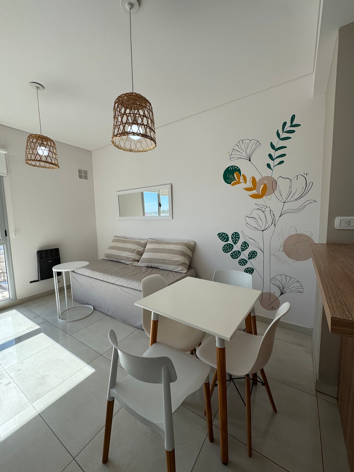 Relax in this calm and elegant space. This one-bedroom apartment is located on O'Higgins Street, just meters from the main square. It features a balcony, fully equipped kitchen, and a bathroom. A living room in the entrance is available for guests' use. • Kitchen with dishes, microwave, electric kettle, toaster, coffee maker, and fridge • Smart TV • Linens • Amenities (shampoo, conditioner, soap, etc.) • Minibar • Air conditioning • Wi-Fi • Parking available