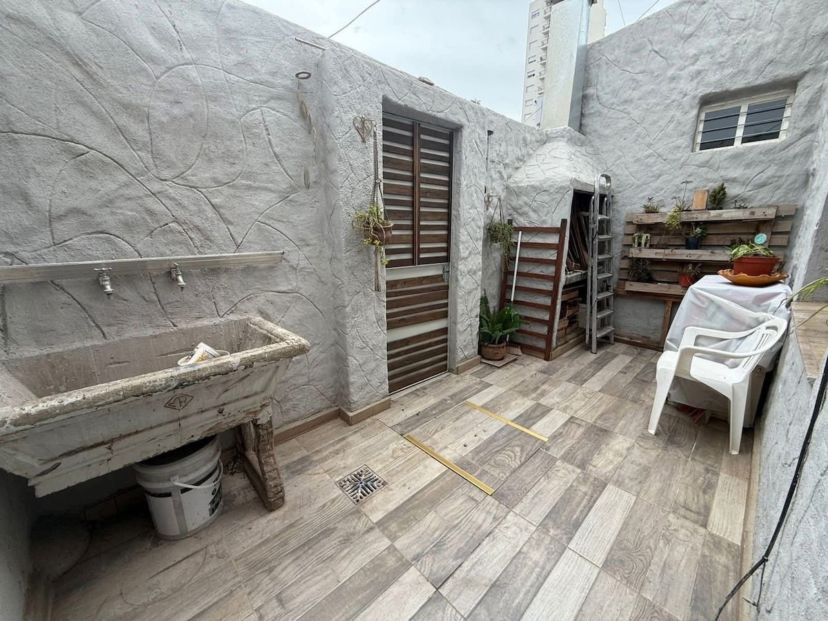 Departamento céntrico con patio. Excelente ubicación, en su cercanía hospitales. El departamento está situado en planta baja. Sala de estar con sillón y TV. Cocina integrada completamente equipada (vajilla, heladera con freezer, cocina, horno microondas, pava eléctrica, cafetera). Baño con bañera y bidet. Lavarropas. Dormitorio con vista a patio interno. El alquiler incluye toallas y ropa de cama. Se aceptan mascotas.