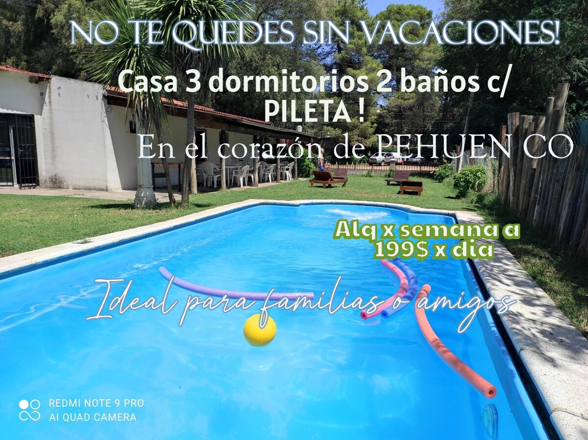 Relajate con toda la familia en este tranquilo alojamiento. 🏡 Alquilo casa con pileta en Pehuen Co. 👤Capacidad para 5/6 personas. 🏖️Zona Pueblo Darwin, a 7 cuadras de la playa, a 800 mts del Bosque Encantado y a 100 mts de minmercado. Del centro está a 3,5 km. 🏠 Living/comedor, cocina, baño, tres habitaciones y galería. Además cuenta con wifi, flow, Disney, vajilla completa, electrodomésticos, fogón, juegos de mesa. 🐕Se acepta mascota raza chica con responsabilidad. 🚗 Entrada para autos.