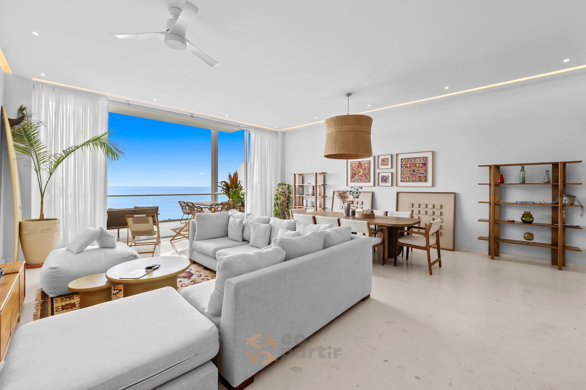 Penthouse contemporáneo frente al mar, privacidad, luz natural y confort elevado. Este departamento es un santuario moderno para quienes viajan por placer, inspiración, trabajo remoto o descanso profundo. Despierta con el sonido del Pacífico, desayuna con vista al horizonte y termina tus días con sunsets cinematográficos. Ubicado dentro del desarrollo premium Bolongo, uno de los más reconocidos de la Bahía de Banderas, con acceso directo a la playa, amenidades tipo resort y seguridad 24/7.