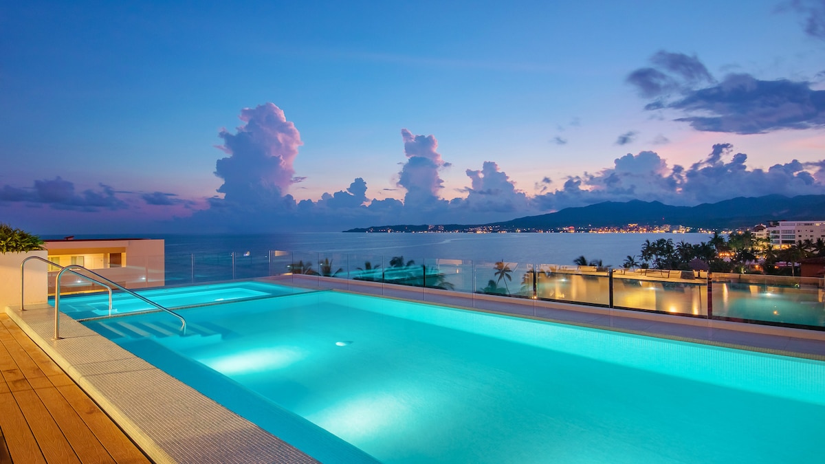 无边际泳池和私人露台 | 步行即可抵达海滩!
