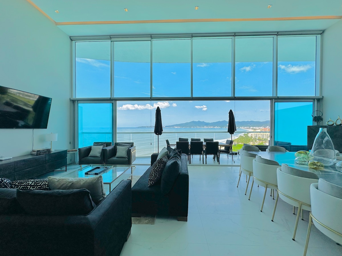 Incredible front beach apartment, large private terrace overlooking the Banderas Bay and beautiful gardens. Private and quiet beach area for total relaxation. Very nice common areas with two infinity pools. You will also be able to enjoy the state-of-the-art gym and Padel Tennis courts. It has a Rooftop on the top floor with 2 pools and a jacuzzi. An incredible place, away from the hustle and bustle of the city, ideal to relax and unwind.