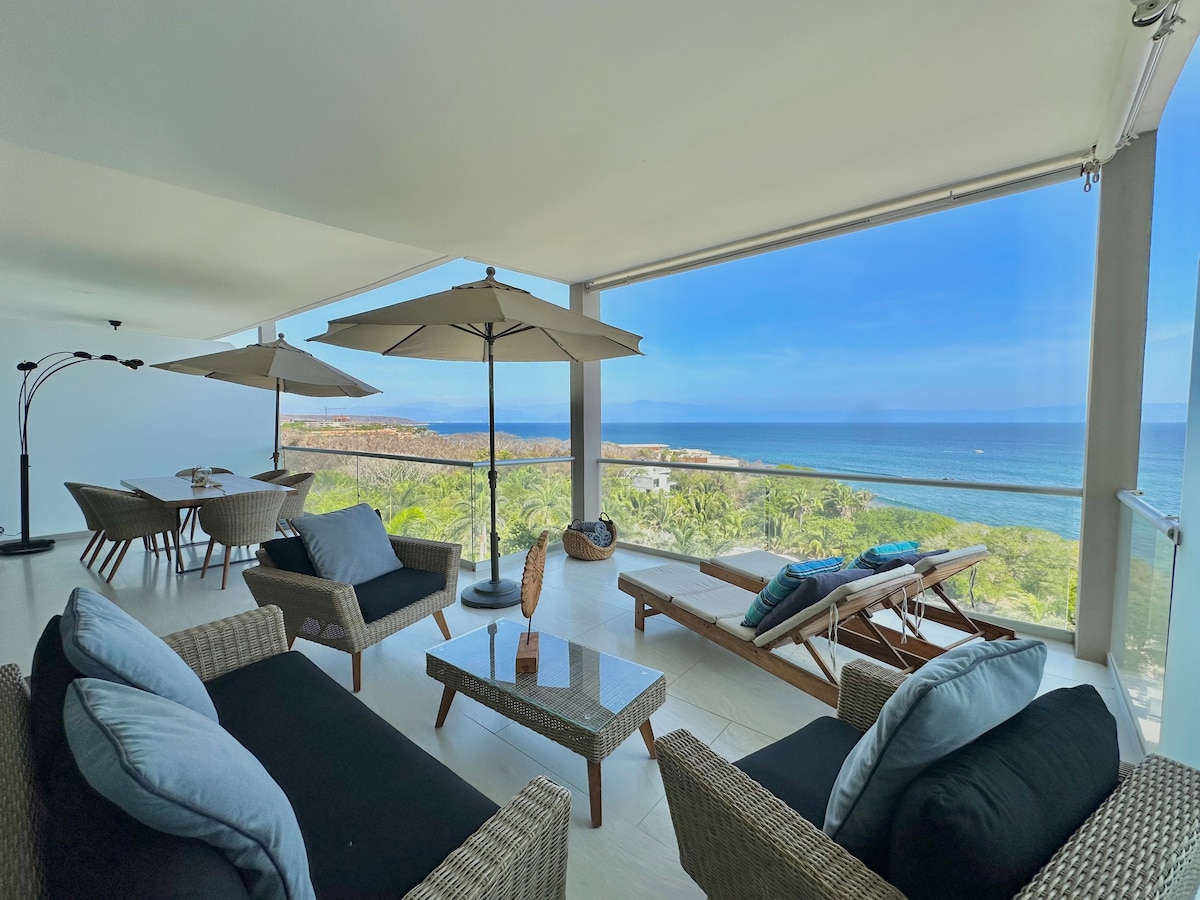 Sumérgete en el lujo y la comodidad en nuestro espectacular departamento beachfront de dos recámaras y dos baños para un máximo de seis huéspedes en Bolongo, Punta Mita. El lujoso apartamento cuenta con una cama King en la recámara principal, la cual tiene acceso directo al balcón y un baño privado dentro. La segunda recámara con dos camas Queen en litera. Todos los niños cuentan como huéspedes sin importar edad, incluidos bebés.