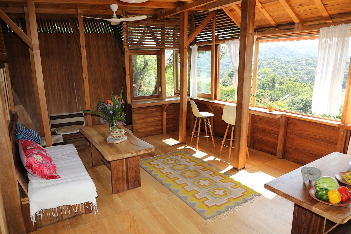 Casita Luna offers INCREDIBLE ocean views. This is a bright & airy studio unit with a queen bed as well as a daybed, that can be used for an extra guest. The unit has a kitchenette, spacious bathroom with beautiful tiles. The pergola-covered terrace has an amazing view of the valley and the ocean. The casita is at the same level as the brick pizza oven and grill. Please note the house sits atop Cielo Hill. We do have a golf cart for rent if the hill is a problem. The walk is good exercise. 🍻