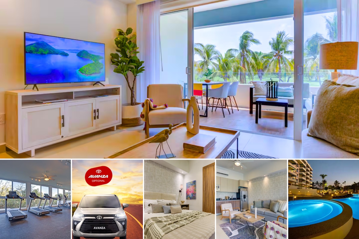 Escape to this exclusive luxury apartment in the new Marítima Golf development, perfect for up to 4 guests. Enjoy a queen-size bedroom, a queen sofa bed, a balcony overlooking the Flamingos Golf Course, and access to exclusive beach area just steps away 🏖. Live a unique experience with resort-style amenities: rooftop pool, restaurant, fully equipped gym, jacuzzi, cinema, library, ping pong, and more. The perfect place to relax in an elegant new space just steps from the sea.