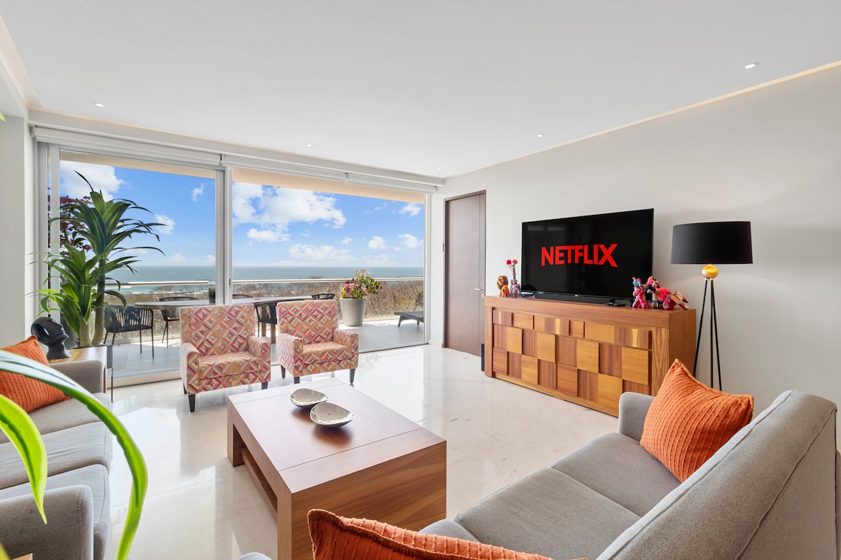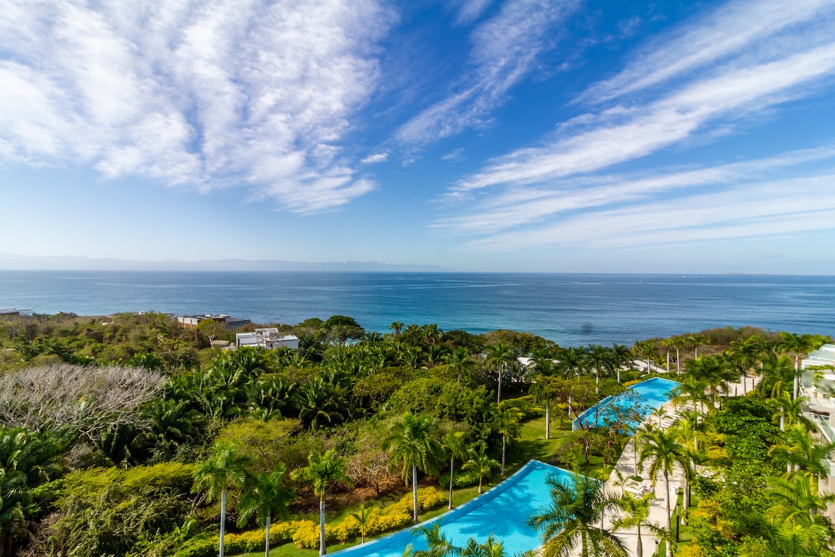 Welcome to your luxurious Airbnb in Bolongo, Punta de Mita. With 187 square meters, it features a balcony with a dining area and ocean views, a well-equipped kitchen, a dining room for 10 people, 2 bedrooms, and 2 full bathrooms. Amenities include a private beach, 7 pools, a business center, cinema, spa, gym with a 180-degree bay view, 24/7 security, and parking. Each bedroom offers unique views, from the sea to the mountains. Experience luxury and comfort in this exclusive coastal retreat.