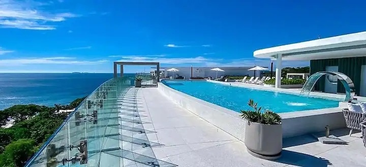 Disfruta de este lujoso penthouse de 2 pisos frente al mar: • 3 recámaras, cada una con cama king size y baño privado • Balcón con impresionantes vistas a la playa • Cocina totalmente equipada • Jacuzzi en Roof para una experiencia de relajación total • Acceso directo a playa con club de playa privado • Piscina frente al mar y segunda piscina en rooftop con vistas a la bahía • Restaurante y bar en el edificio • Gimnasio equipado y cancha de pádel • AC en todos los cuartos • Seguridad 24/7