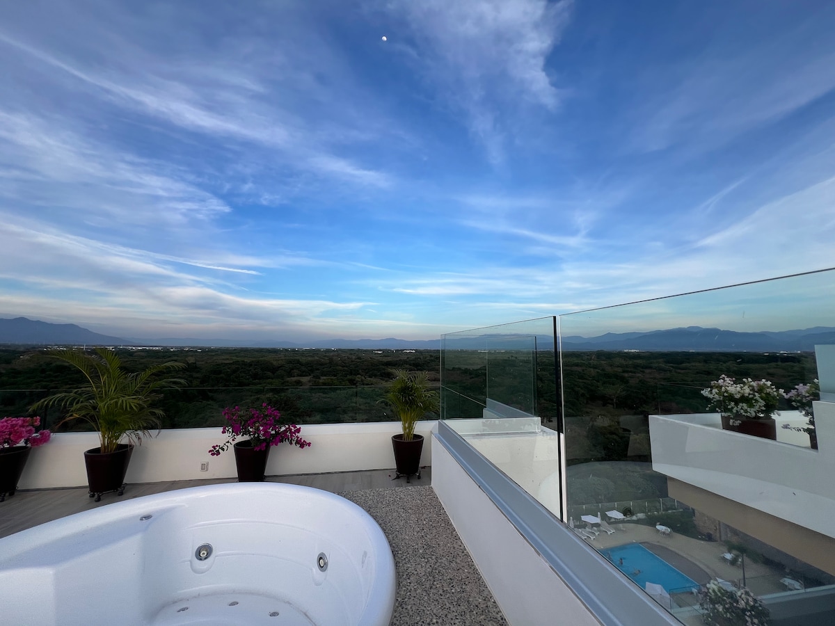 Buscamos que durante tu estancia te sientas como en casa, agregamos detalles únicos, funcionales y especiales para ti… Su terraza panorámica con vista hacia al océano, te permitirá apreciar toda la Bahía, una vista espectacular! Además en la torre se encuentra un maravilloso Rooftop acompañado de una bella piscina, que te encantará con sus vistas naturales, un espacio lleno de exclusividad, relajación y diversión.
