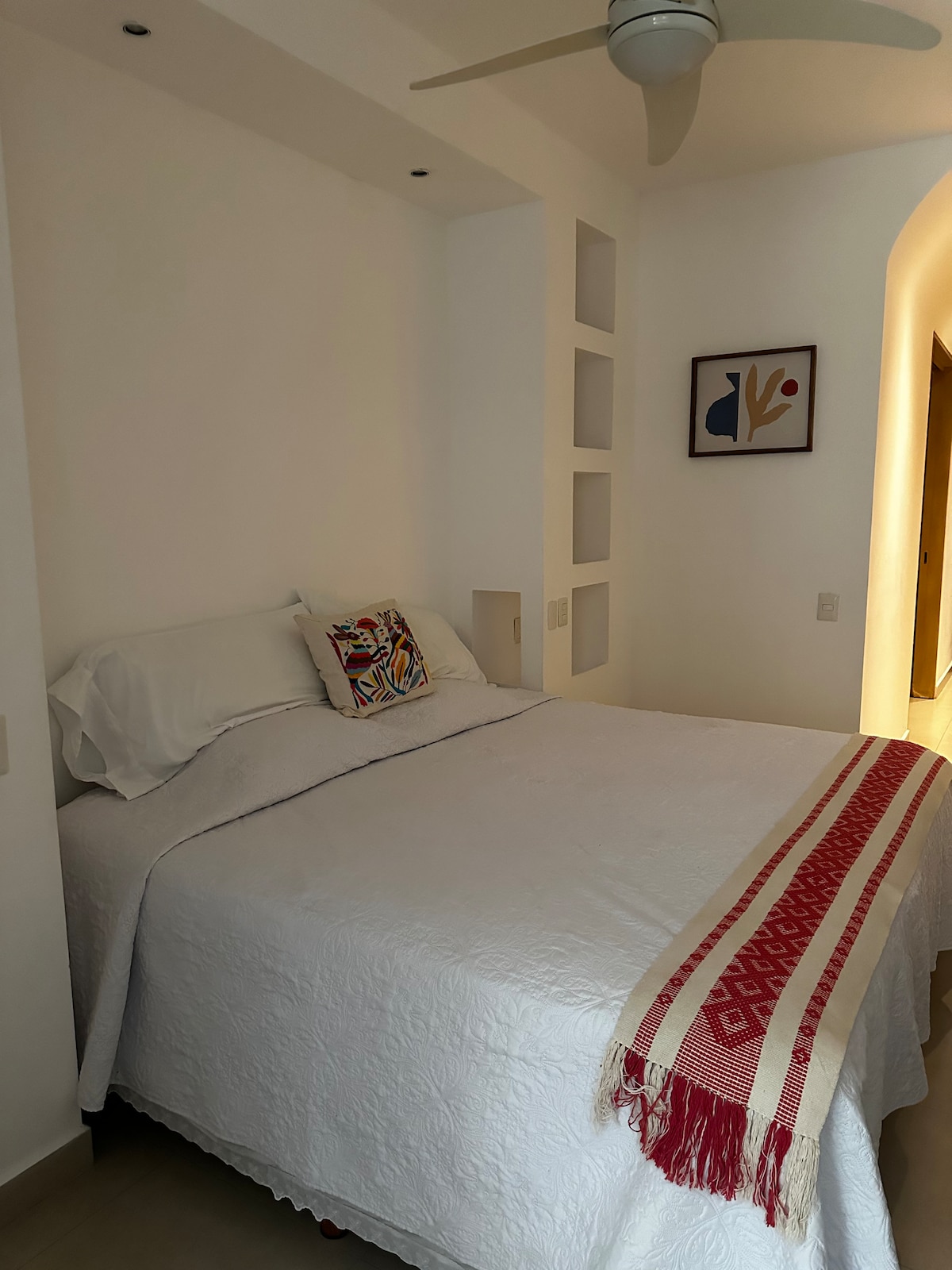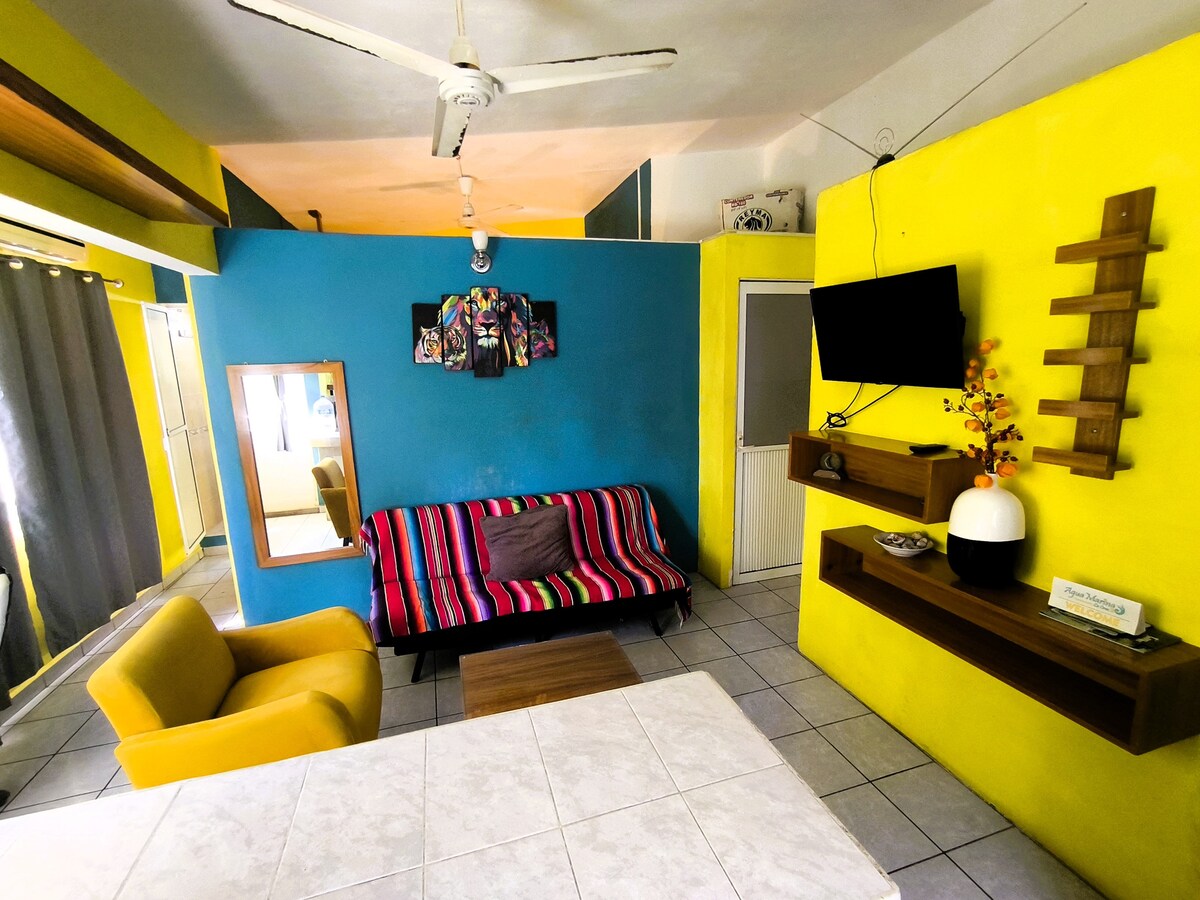 🌴 Modern apartment in the heart of Sayulita. Just 1.5 blocks from the beach and 2 from the plaza, you can walk everywhere — restaurants, cafés and nightlife. Sleeps up to 4 guests with a fully equipped kitchen, WiFi, rooftop terrace and pool access. Being centrally located, occasional street activity may be heard, especially on weekends. Perfect for couples, friends or small families looking to experience Sayulita’s vibrant atmosphere.