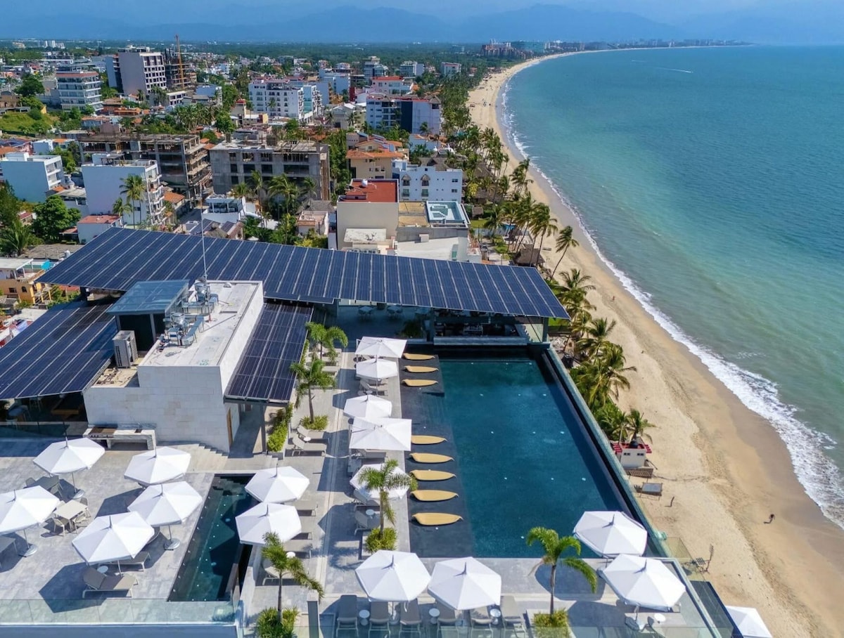 DEPARTAMENTO LOFT EN ARIA OCEAN, NUEVO PISO 8 CON HERMOSA VISTA AL CAMPO DE GOLF FLAMINGOS, IDEAL PARA PAREJAS Y PAREJAS CON NIÑOS DENTRO DEL MISMO COMPLEJO ESTÁN LAS ALBERCAS Y LA PLAYA, CUENTA CON RESTAURANTE BAR EN LA ZONA DE ALBERCA. CERCA DE CAMPOS DE GOLF, Y RESTAURANTES, A 18 MINUTOS DEL AEROPUERTO DE PUERTO VALLARTA -CONTAMOS CON WIFI El departamento cuenta con ASADOR De Gas,, y la alberca de la playa (de uso exclusivo para ustedes los huéspedes) tiene calefacción!! NO MASCOTAS!