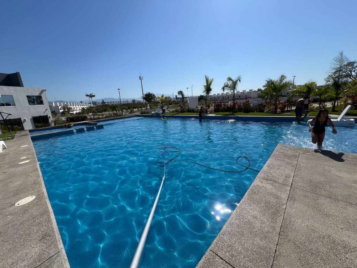 Great location in Valle Dorado, right in front of Nuevo Vallarta. Inside a gated community, it has 3 bedrooms, A/C in all areas, WiFi, 4 TVs, Netflix and Impecable restrooms. It has an awesome pool and also an amazing club house. Live like a local and experience the taste and flavors of the surroundings!. There is a mall "Lago Real" with Walmart and "Ley" supermarket very near the house.