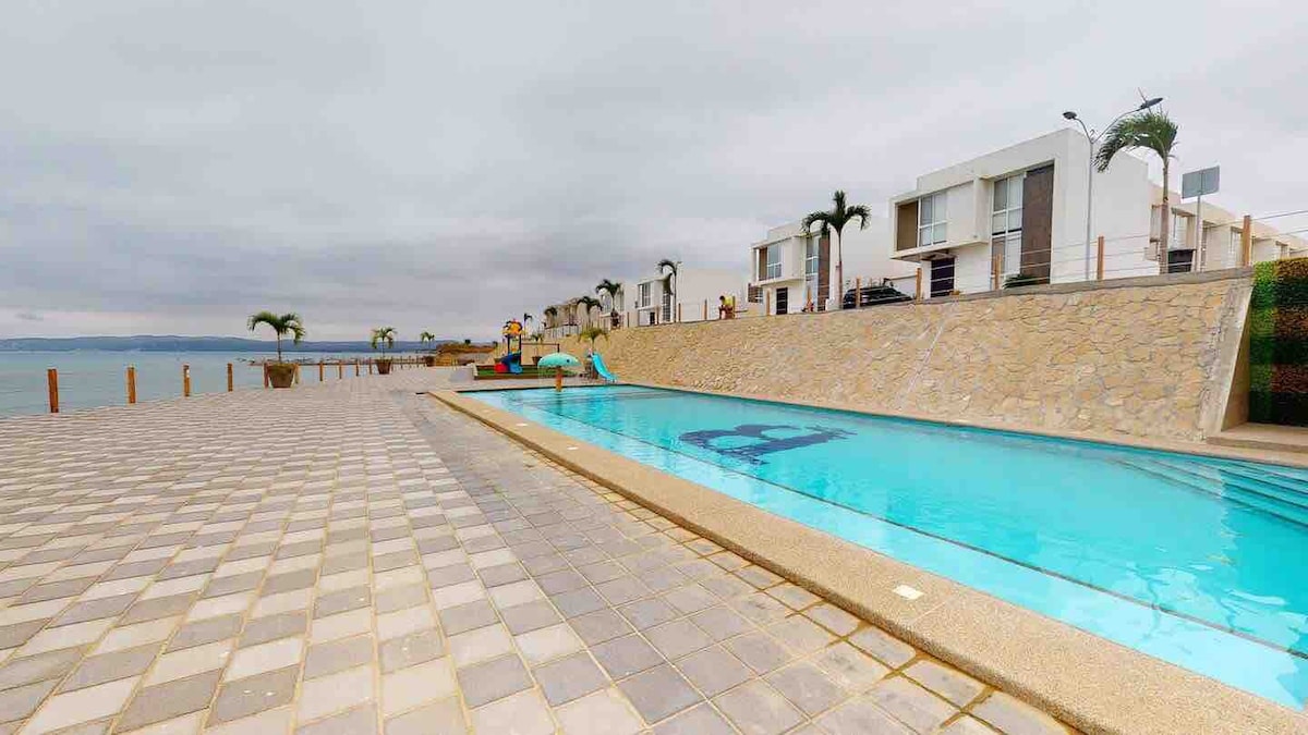 Relájate con toda la familia.! En este alojamiento donde la tranquilidad se respira. Tendrás acceso directo a Playa Privada y una hermosa Piscina compartida. Te ofrecemos 3 habitaciones todas con Aire acondicionado, 2 de ellas con Vista a la playa y 3 Tv con aplicaciones modernas. Wifi en toda los 2 pisos de la Casa. Tenemos una cocina equipada con Todo lo necesario y un Patio con Un Asador y comedor Exterior Además Estacionamiento para 2 autos Supermercado y Gimnasio cercanos. Recibes obsequio.