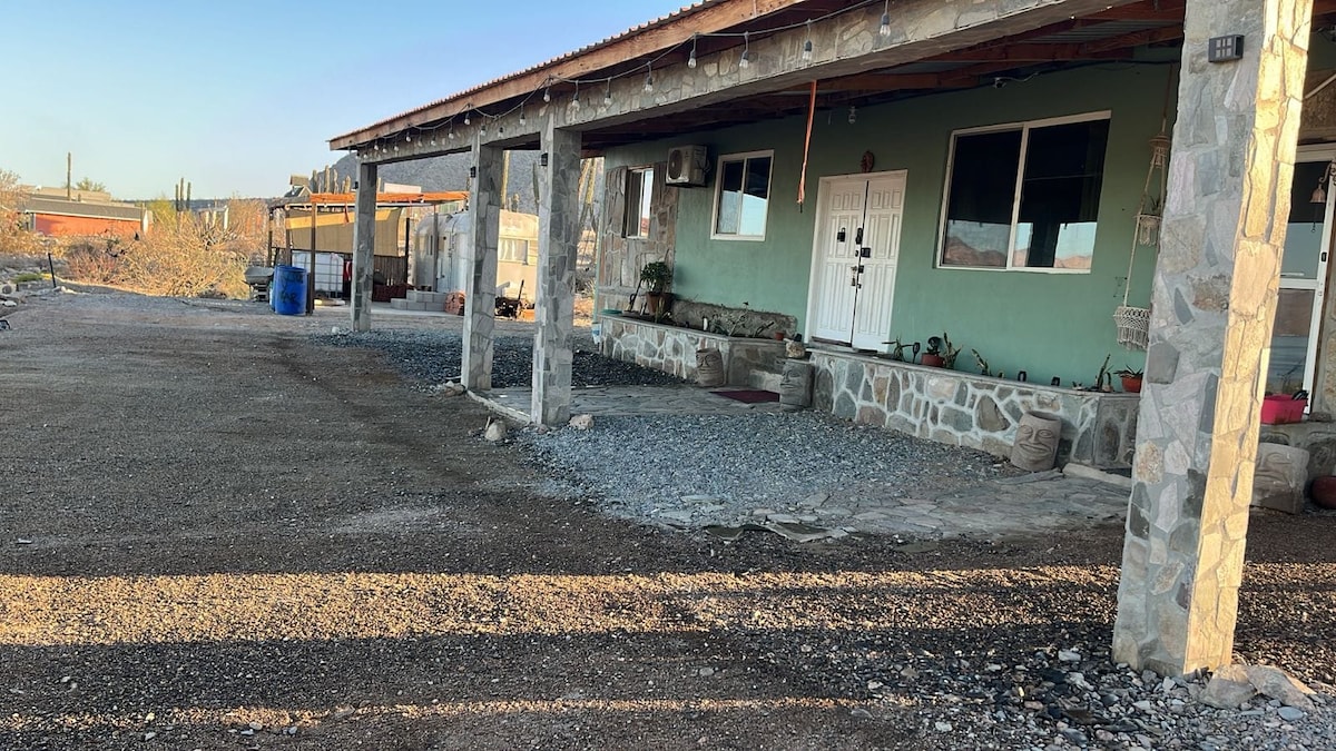 The Cabaña Luna is a cabin made of cantera rock. The cabins have electricity, 2 full beds, kitchen, refrigerator,bathroom and a large patio outside the front door.