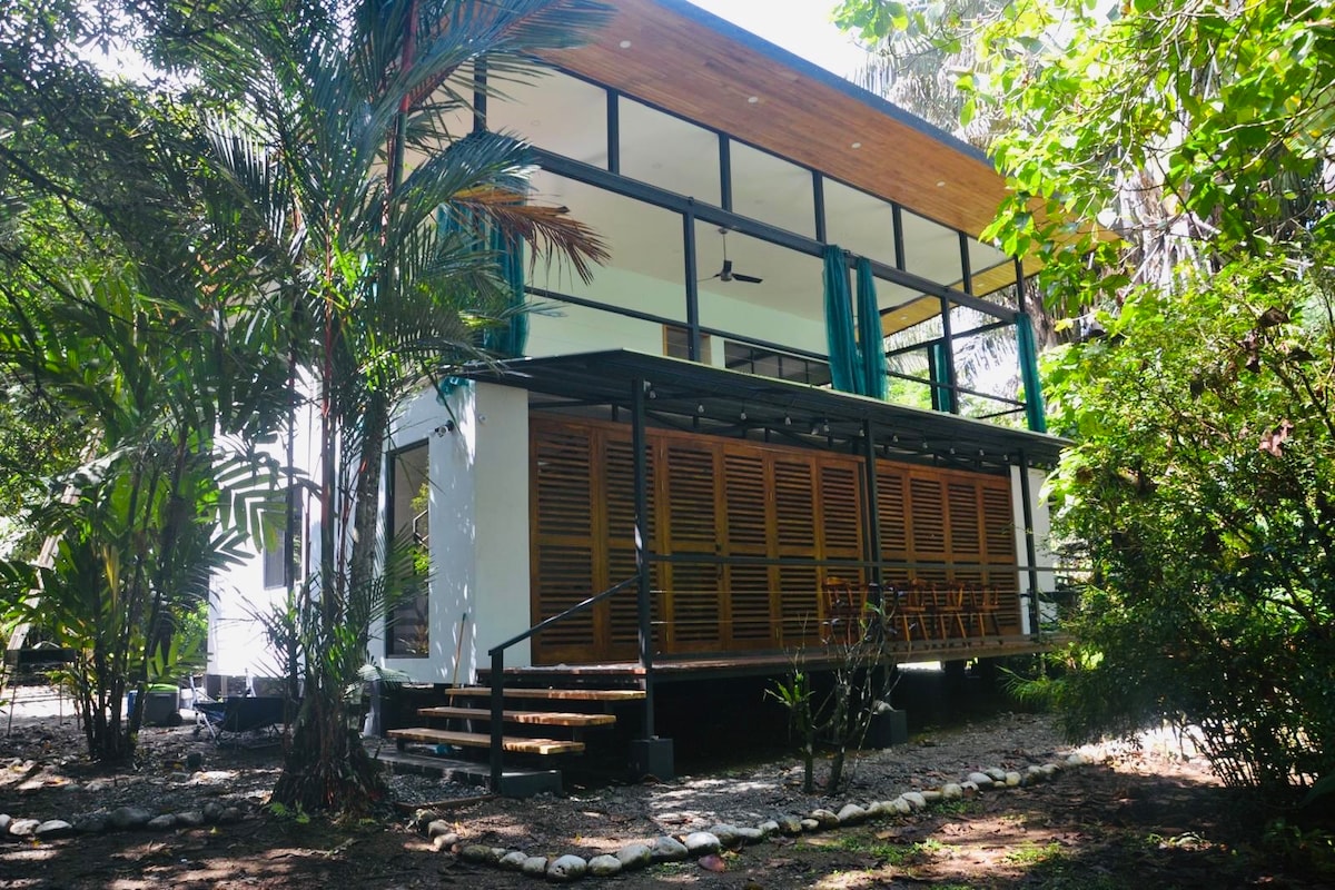 Relax with family or friends at this peaceful, clean and brand new two bedroom house, located in one of the most biodiverse places on the planet! Your stay includes use of all watersports toys, pool and playground for children. The beach is calm and warm with many beach restaurants and bars within walking distances. If you have children, we also offer Osa Jungle Camp that the children may attend for a fee while you enjoy your holiday. Many exotic animals and sea life right outside your door.