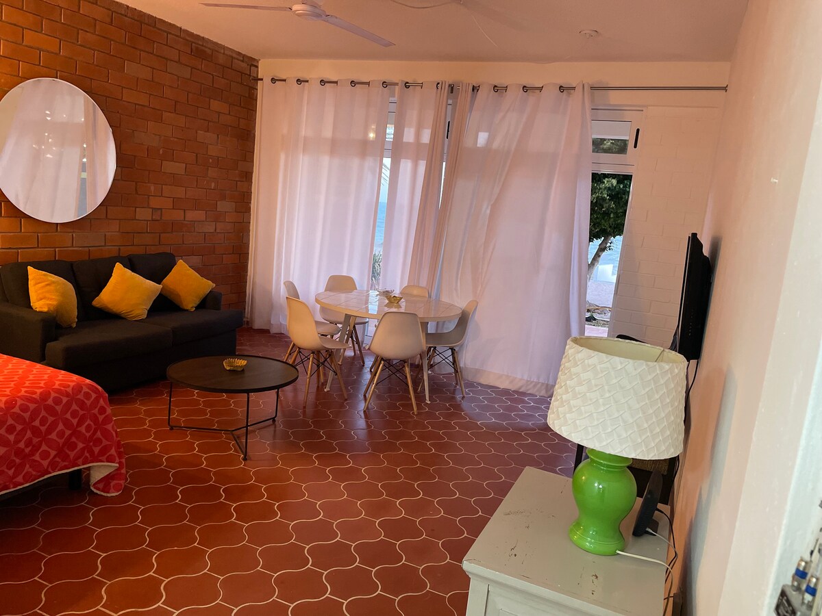 Departamento tipo loft a un minuto de la playa caminando y con una tienda de abarrotes con expendio a la vuelta de la esquina. Incluye microondas, mini refrigerador, sarten eléctrico y cafetera para facilitarte la estancia. Contamos con área común con asadores y fogatero para relajarse al aire libre. Nos gusta tener un trato personal con loS huéspedes, tratando siempre de cubrir sus necesidades... Así que si necesitan algún extra, pueden preguntarnos sin compromiso. ¡Esperamos verte pronto!