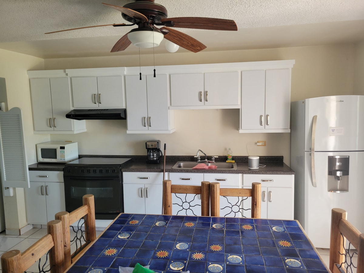 Very spacious!! Sleeps 6. 1 bedroom 1 bathroom casita. With a very large, fully equipped kitchen. Just a few bthe Sea of Cortez. Very quiet and private. Very spacious!!! Mircrowave, stove and kurig. Fully equipped kitchen with full size refrigerator and stove! Netflix, and internet. Also, an outdoor shower Electronic lock for easy access. Fenced in yard for child and pet safety. Parking inside the fence. Covered patio Grill Patio table