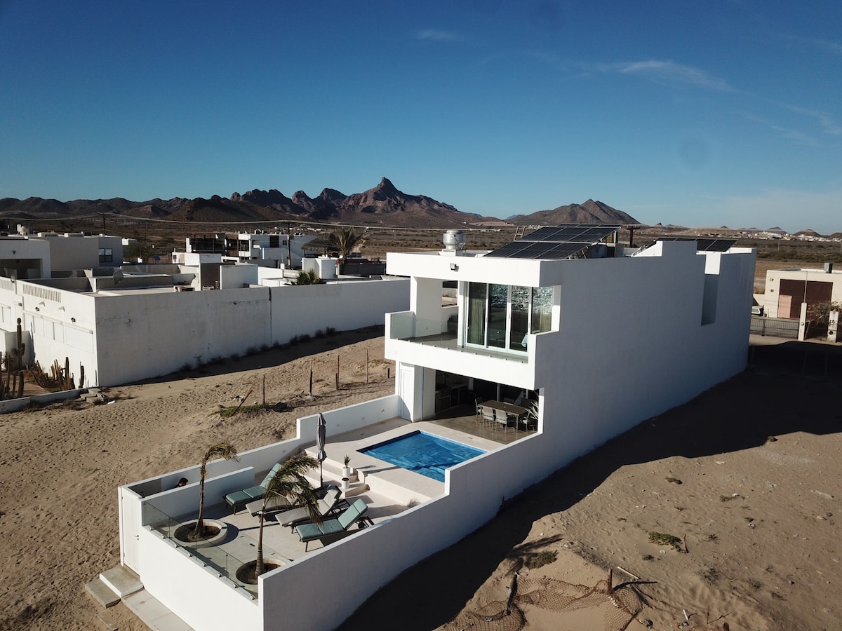 NEW! HEATED POOL!!! Beautiful beach house on Kino Bay (Bahia de kino nuevo), enjoy the wonderful Sea of Cortez sunsets at this beautiful place, air conditioner in all living areas, closed garage for two cars, living room with flat TV (Netflix, Youtube), just 200ft from beach. HIGH SPEED satellite Internet StarLink (TESLA). Note: The pool temperature will be affected by current weather conditions please review Weather forecast in advance.