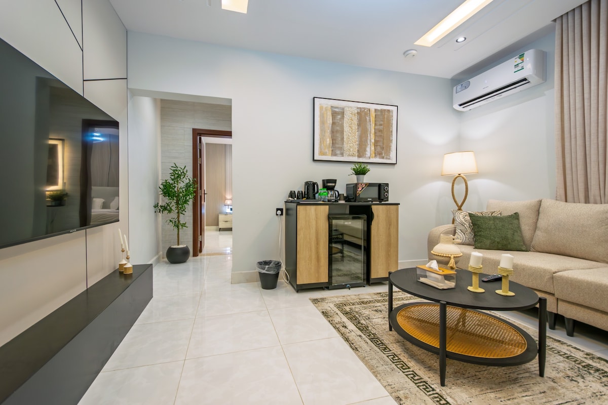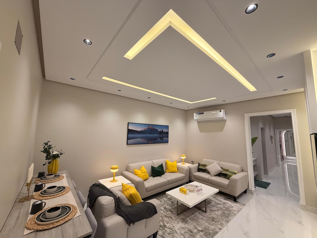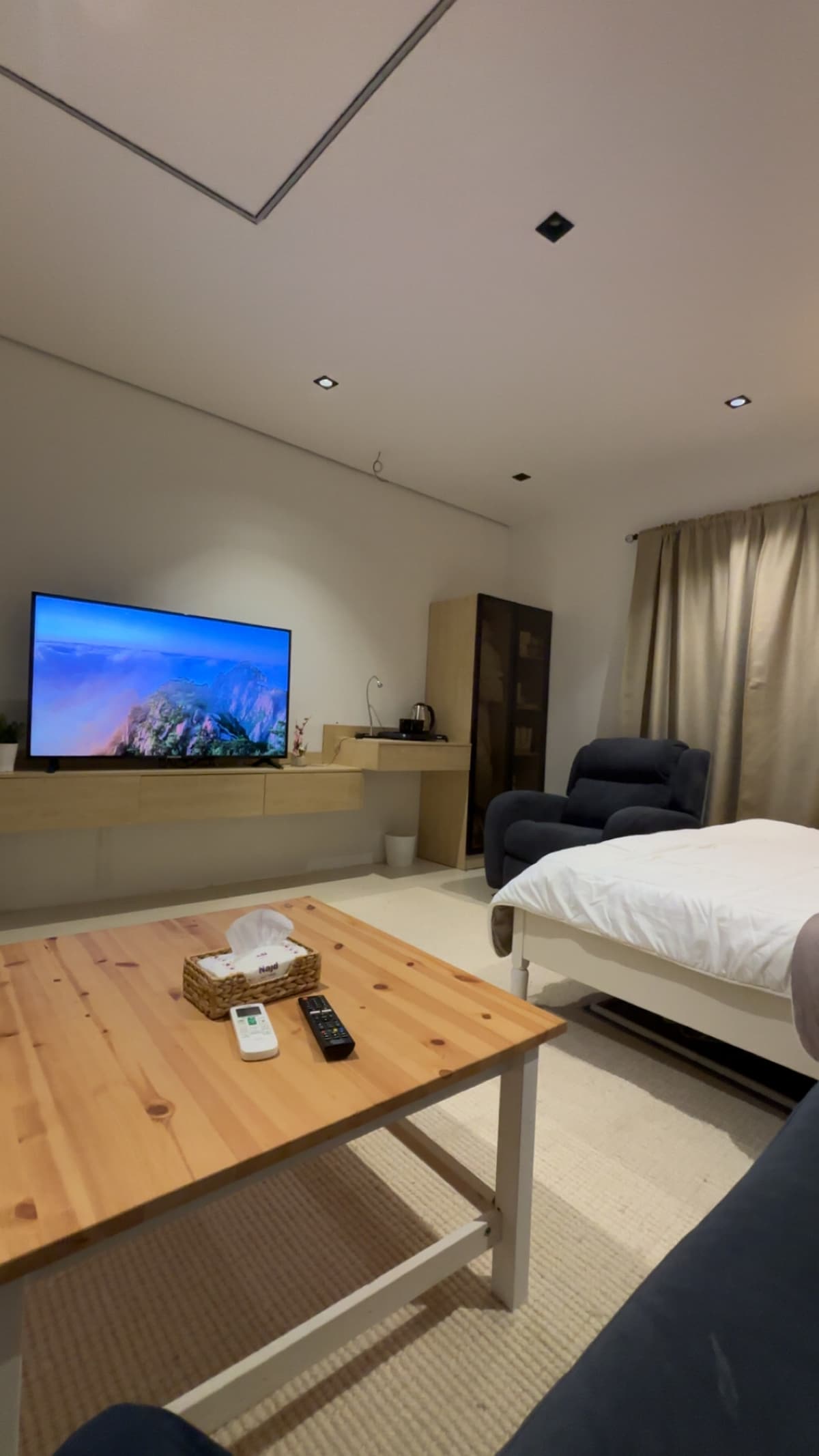 شقة روزالينا – تجربة إقامة راقية مع خصوصية تامة تتميز بموقعها الاستثنائي في حي المنار – خلف الياسمين مول مباشرة، مع تصميم أنيق يوفر الراحة والاسترخاء. • غرفة نوم مستقلة بسرير مزدوج. • صالة خارجية واسعة لمزيد من الراحة. • حمام خارجي خاص. • شاشة عملاقة 65 بوصة بدقة 4K للاستمتاع بأفضل تجربة مشاهدة. • ركن قهوة مجهز بغلاية كهربائية وآلة تحضير قهوة. • إنترنت واي فاي مجاني وسريع جدًا. • عازل صوت حديث للشقة بالكامل لضمان أقصى درجات الخصوصية والراحة. نتمنى لك إقامة سعيدة، وحياك الله ضيفي!