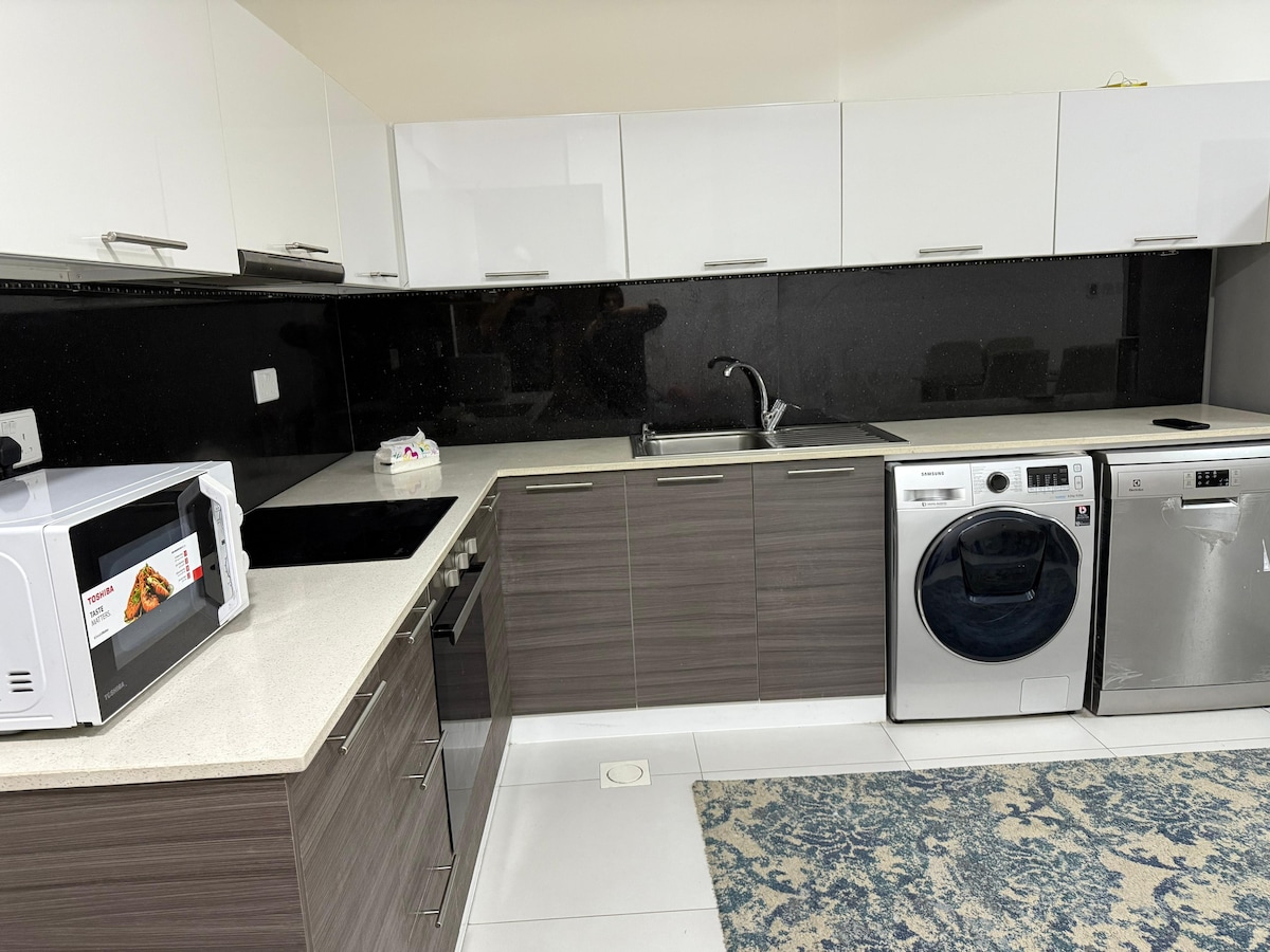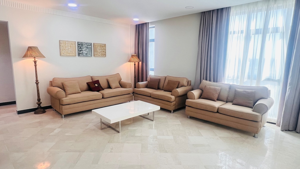 Relax with the whole family and friends at this peaceful yet central location. Modern, newly built, fully furnished and equipped apartment for all your needs. Beach, swimming pool, shopping, restaurants, cafes within minutes of walking distance. Attached to the mall not even the heat can stop you. We are a short drive away, no matter where you come from. 15 minutes: Bahrain International Airport 35 minutes: King Fahd Causeway