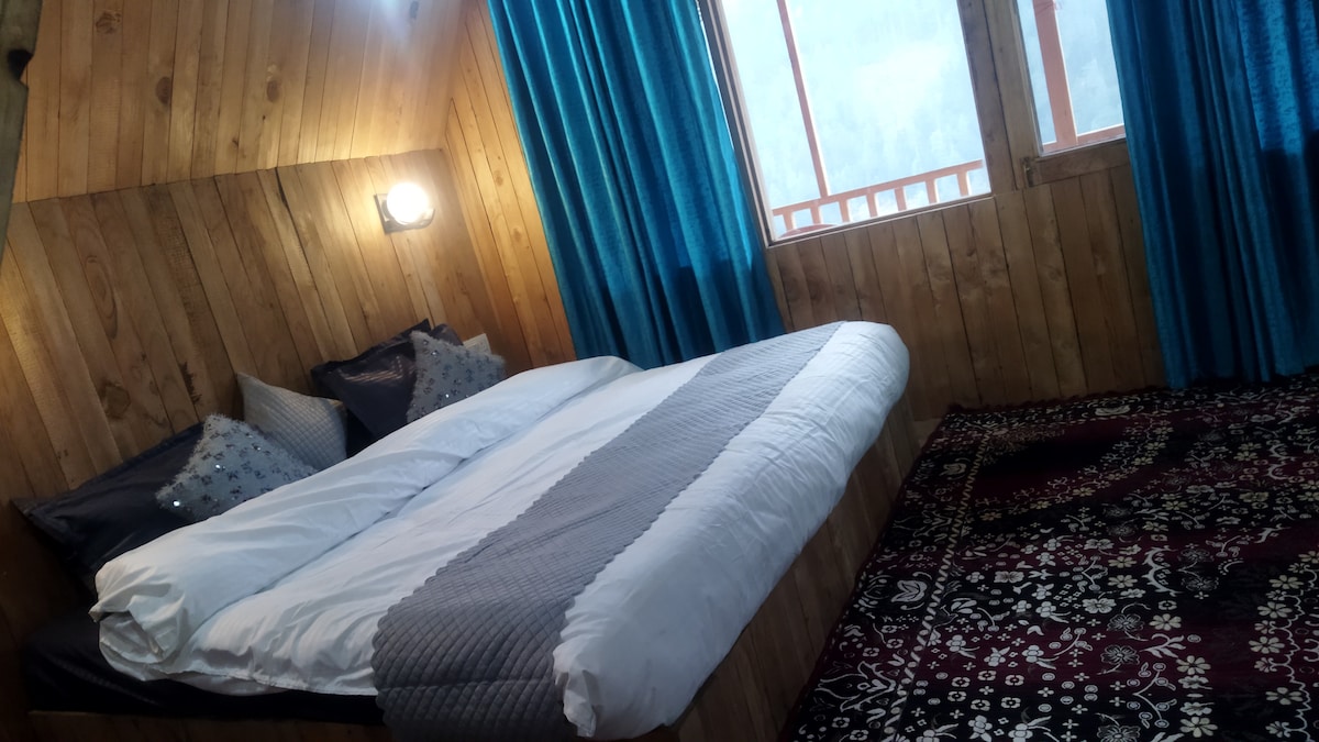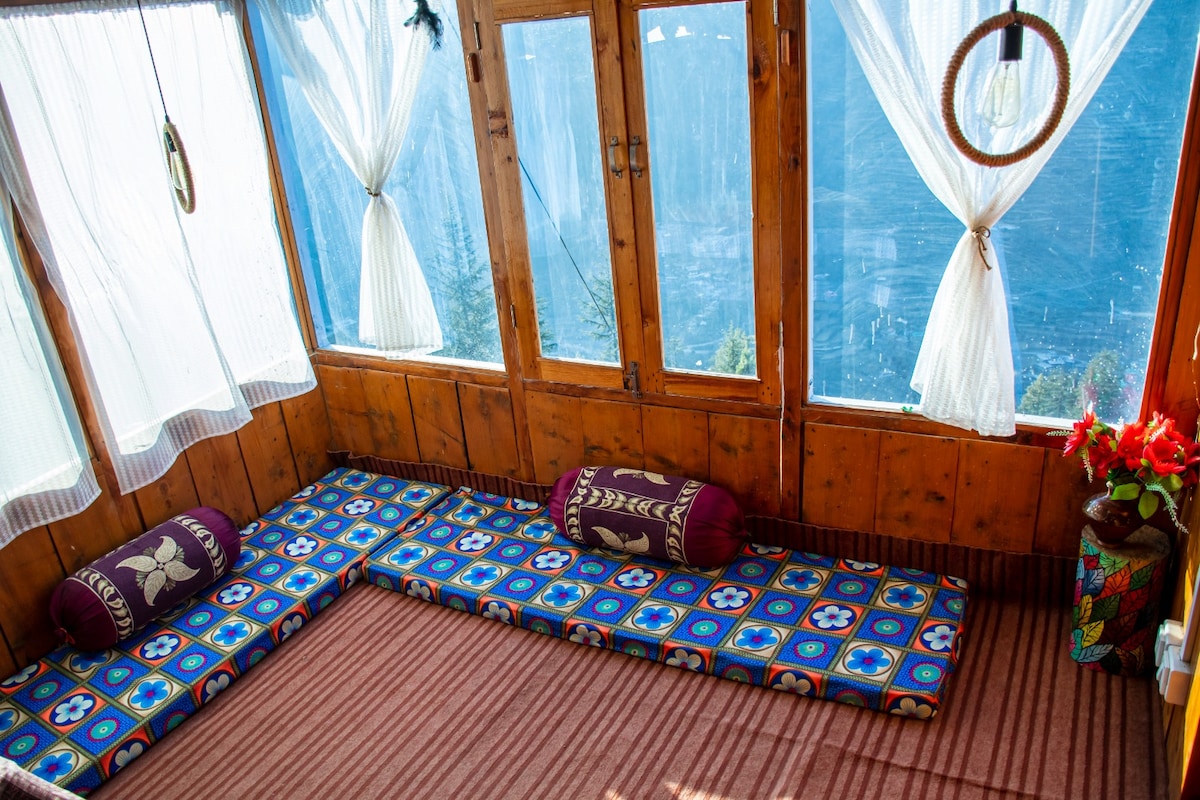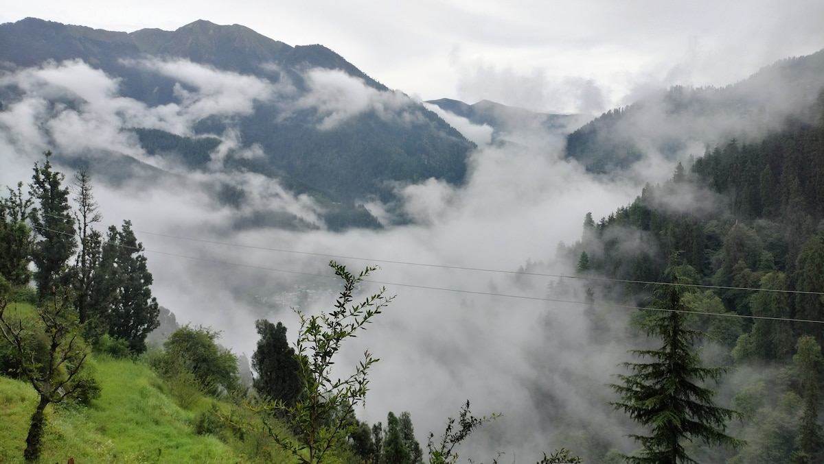 * Relax with the whole family at this peaceful place to stay. a wooden cottage in the middle of mountain with a spectacular view * there's a spacious bedroom, and an attic which function as a bedroom * bone fire 500/- * Broadband Wifi free * our cottage is in one of the most beautiful spots in the town. * Every single guest who stayed with us left happy. * there's a 700 meter trek, hut 99% of the young adults can make it.