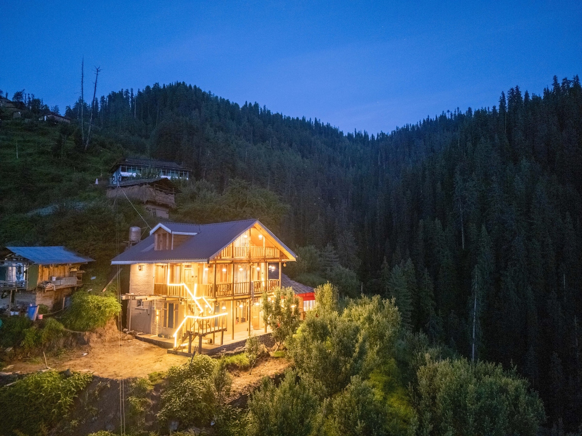 Welcome to our Dreams villa A-Frame cabin in the picturesque village of Lushal, which is 10 km from Jibhi! Nestled amidst the lush greenery of the mountains, this cozy retreat offers stunning valley views and an awe-inspiring 360-degree panorama of nature's beauty. Unwind on the spacious "balcony", and breathe in the fresh mountain air Parking is 100 meters from the cabin, however, there are some bumps in the road where you may need to rise a little or descend a little. Pets are Welcome.