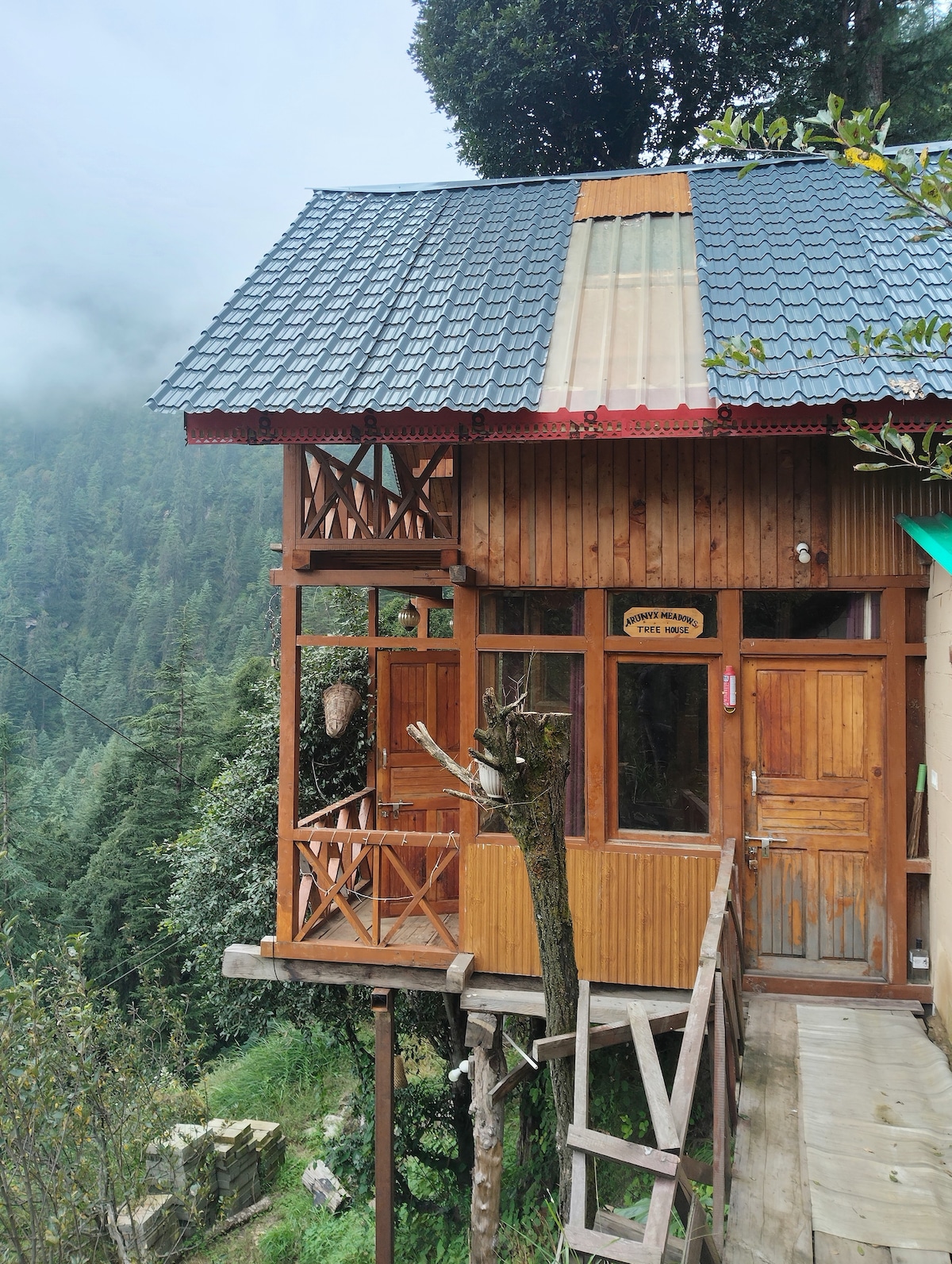* Relax with the whole family at this peaceful place to stay. a wooden cottage in the middle of mountain with a spectacular view * there's a spacious bedroom, and an attic which function as a bedroom * bone fire 500/- * Broadband Wifi free * our cottage is in one of the most beautiful spots in the town. * Every single guest who stayed with us left happy. * there's a 700 meter trek, hut 99% of the young adults can make it.