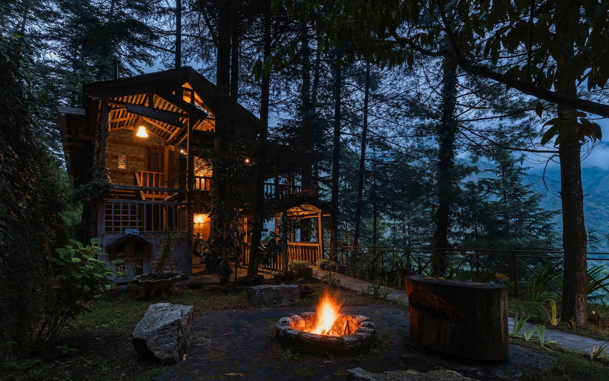 Relax with the whole family at this peaceful place to stay. * Wifi * power backup * Waterfall * Food service & caretaker * Private garden * Pinewood architecture * Safe Parking * Local tips * Bonfire Please note - There is 200mtrs trek from parking spot to the property, We will pick your luggage. - Price includes stay only. Breakfast, Meals, Room heaters, Bonfire & All other services are excluded.