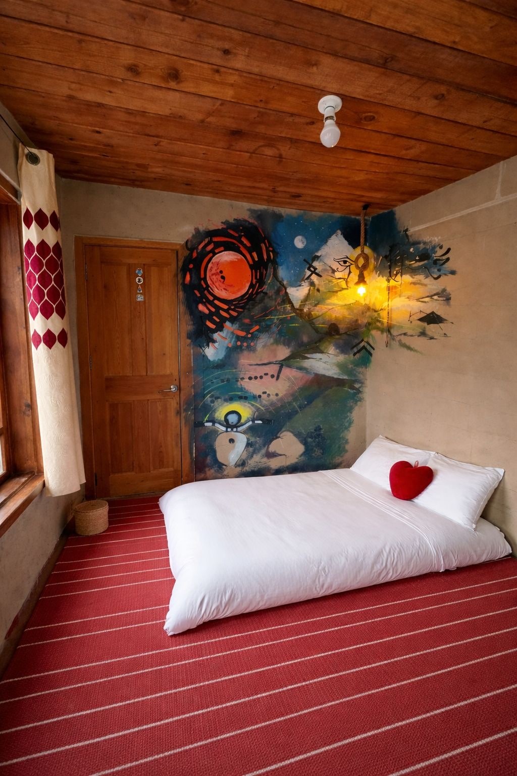A cozy earthen home with a rustic vintage vibe. A place for the experience of exploration, reconnection with nature and slow-conscious living. Our Earthen home is located on top of a mountain within Jibhi valley and in between a dense Deodar forest offering a panoramic view of Pir-Panjal and Dhauladhar ranges, With a beautiful landscape that changes with every passing season. Situated in the quaint village of LUSHAL, our cottage is away from the crowd and hustle of mainstream tourism.