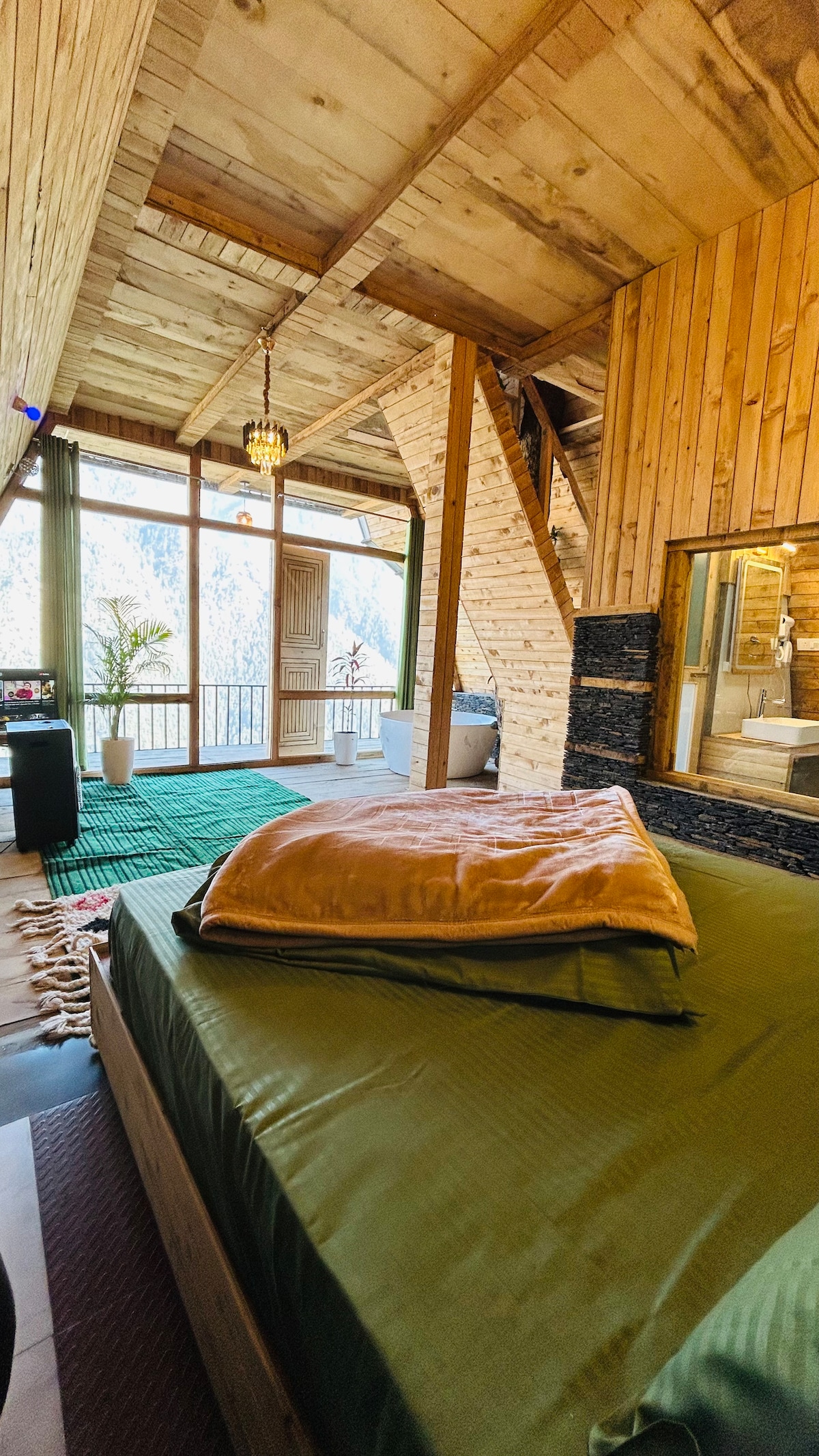 Welcome to Sukoon A-FrameTreehouse, a cozy wooden hideaway surrounded by pure nature. Designed in a beautiful A-frame style, this treehouse offers peaceful vibes, mountain views, and a perfect escape Wake up to fresh air, enjoy the sunrise from your private balcony, and spend your day relaxing in a quiet, natural environment. Whether you’re coming for a romantic getaway, a family stay, or a peaceful solo break, this treehouse promises comfort, privacy, and unforgettable moments.