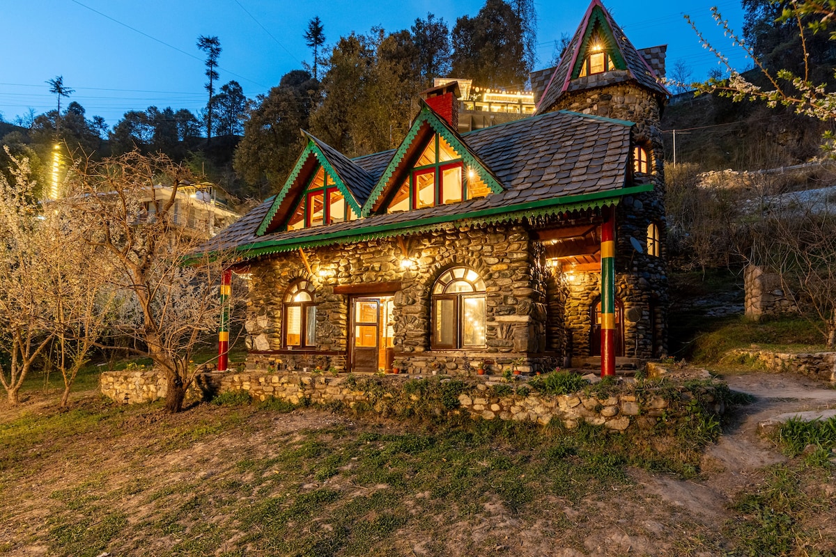 Hidden in plain sight for over three decades, this unique three-bedroom riverside castle home reveals itself along the banks of the Jibhi River. Built over 40 years ago by a Dutch-Indian couple, the estate sits magically amidst a lush private grove of peach, plum, and apricot trees. The architecture strikes a rare balance between rugged mountain strength and whimsical charm, creating an atmosphere that feels as if you have stepped directly into a classic fairytale.