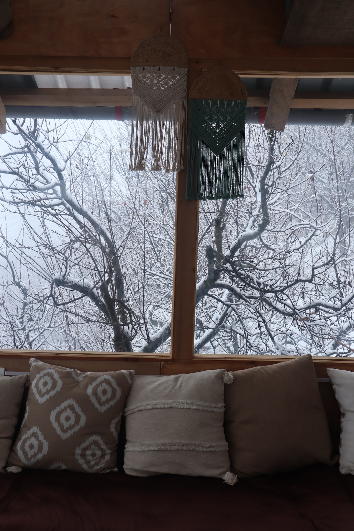 “Into the Woods Eco lodge in the middle of Apple orchards and forest with stunning views.” ★ Rustic Pinewood Architecture ★ Panoramic Views of Forests & Mountains ★ Eco-friendly Stay . ★ Wi-Fi ★ Power Backup ★ Fresh, Home-style organic Food ★ Bonfire Area ★ Indoor Fireplace & Dining Area ★ Organic Garden Surroundings Please note:- There is 500 meters trek down from parking spot to reach at property, Your luggage will be carried by us.