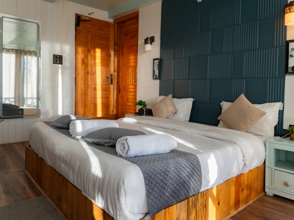 Perched amidst the pristine wilderness of the Himalayas, our Luxury Duplex Treehouse offers a one-of-a-kind retreat for those seeking both serenity and sophistication. Designed for discerning travelers who crave an immersive nature experience without compromising on comfort, this enchanting hideaway redefines mountain luxury. Experience elevated comfort in our luxury duplex treehouse featuring a private Jacuzzi in the bathroom, offering soothing relaxation with stunning mountain views.
