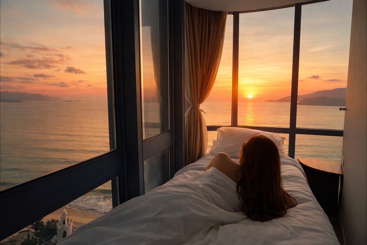 Xin chao, Welcome to leCam — a private 2BR 2BA apartment on the 28th floor with ocean and city views. The space is styled with Wabi-Sabi vibes: simple, clean, and super cozy. It’s quiet, full of natural light, and there’s a comfy sofa bed if you're a group of 5. The building’s secure with guards and central — minutes from the beach, Dam Market, 24/7 stores, and amazing local food