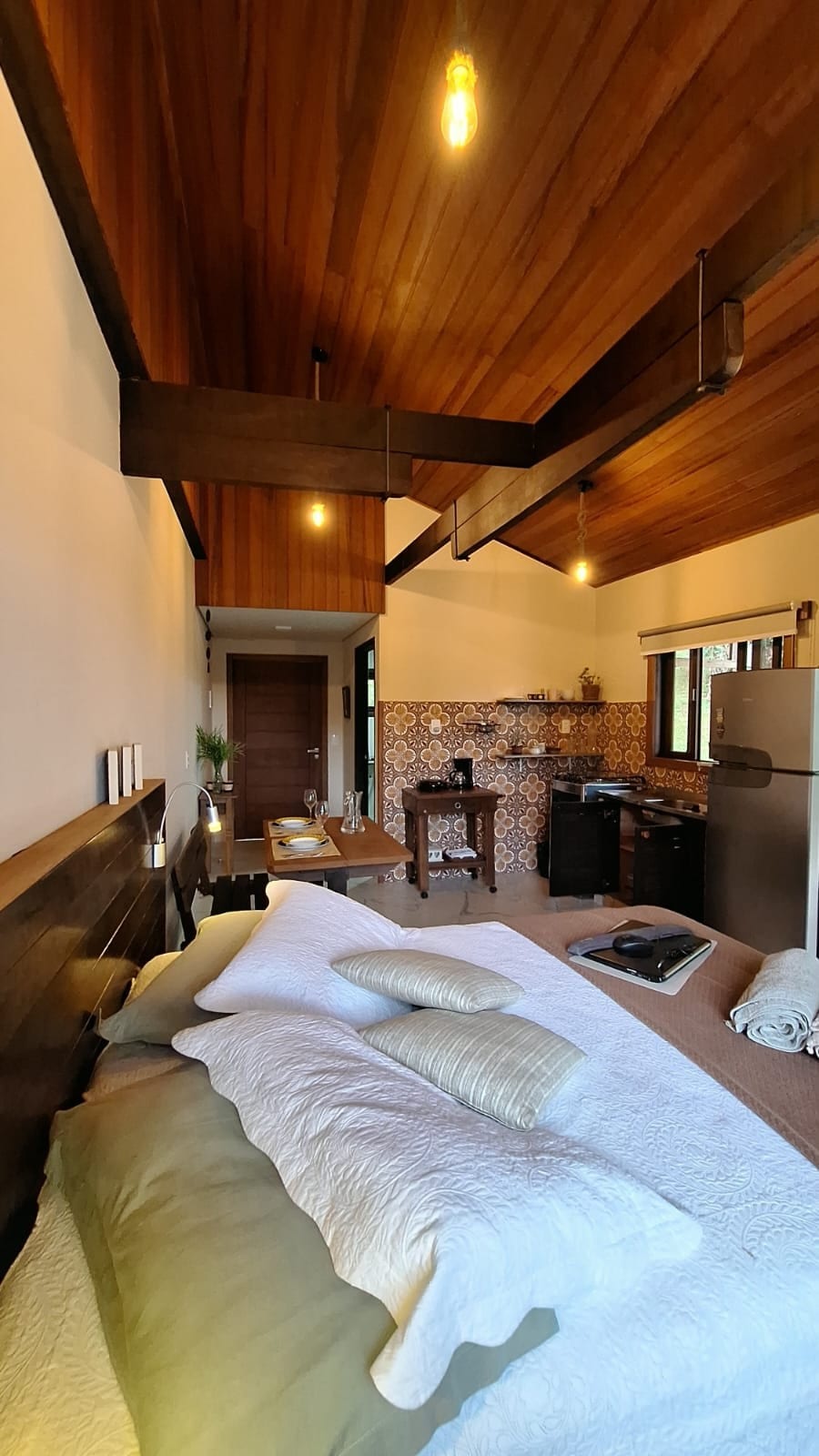 Uma trilha privativa leva até o canal, onde o pôr do sol é só de vocês dois. Auca e Jobs, nossos cães, adoram guiar os hóspedes até lá. 🐕 Cabana em meio à mata nativa, com ar puro de verdade. Namoradeira, redário e fogueira para noites que ninguém quer acabar. Ovos frescos do galinheiro e temperos da horta para cozinhar juntos. 🌿🔥 Praia do Ervino a 3 km. Cadeiras, guarda-sol, cooler e bikes inclusos. Para casais que querem desacelerar. 💛