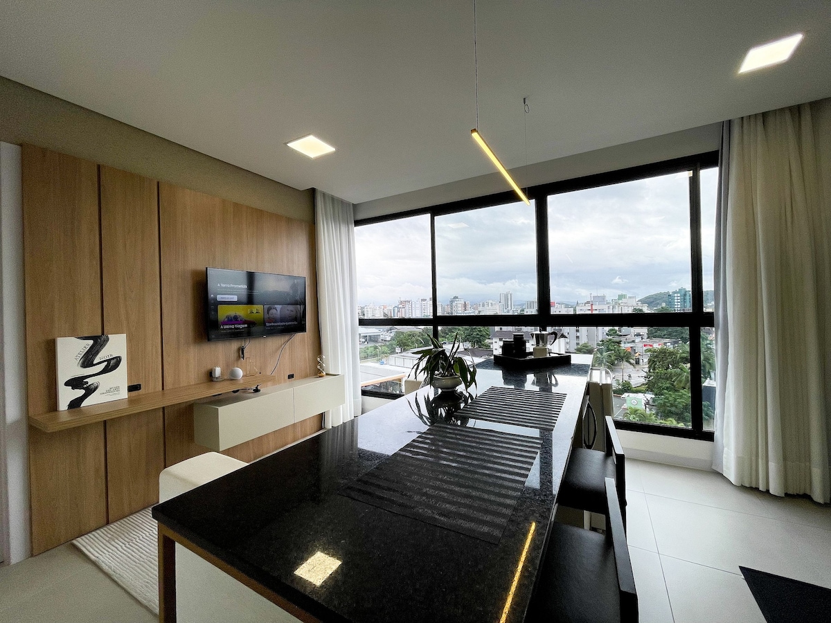 Apartamento localizado no bairro Anita Garibaldi, totalmente equipado para até três pessoas. Disponibilizamos roupa de cama e banho, wifi, ar-condicionado em todos os cômodos. Amplo terraço com vista para o horizonte da cidade e churrasqueira. Além disso, no condomínio temos uma pequena piscina, academia e brinquedoteca. Um espaço para casais e famílias que procuram conforto e localização, estamos no coração da cidade, próximo a restaurantes, shopping, Centreventos, Expoville, Bolshoi e outros.