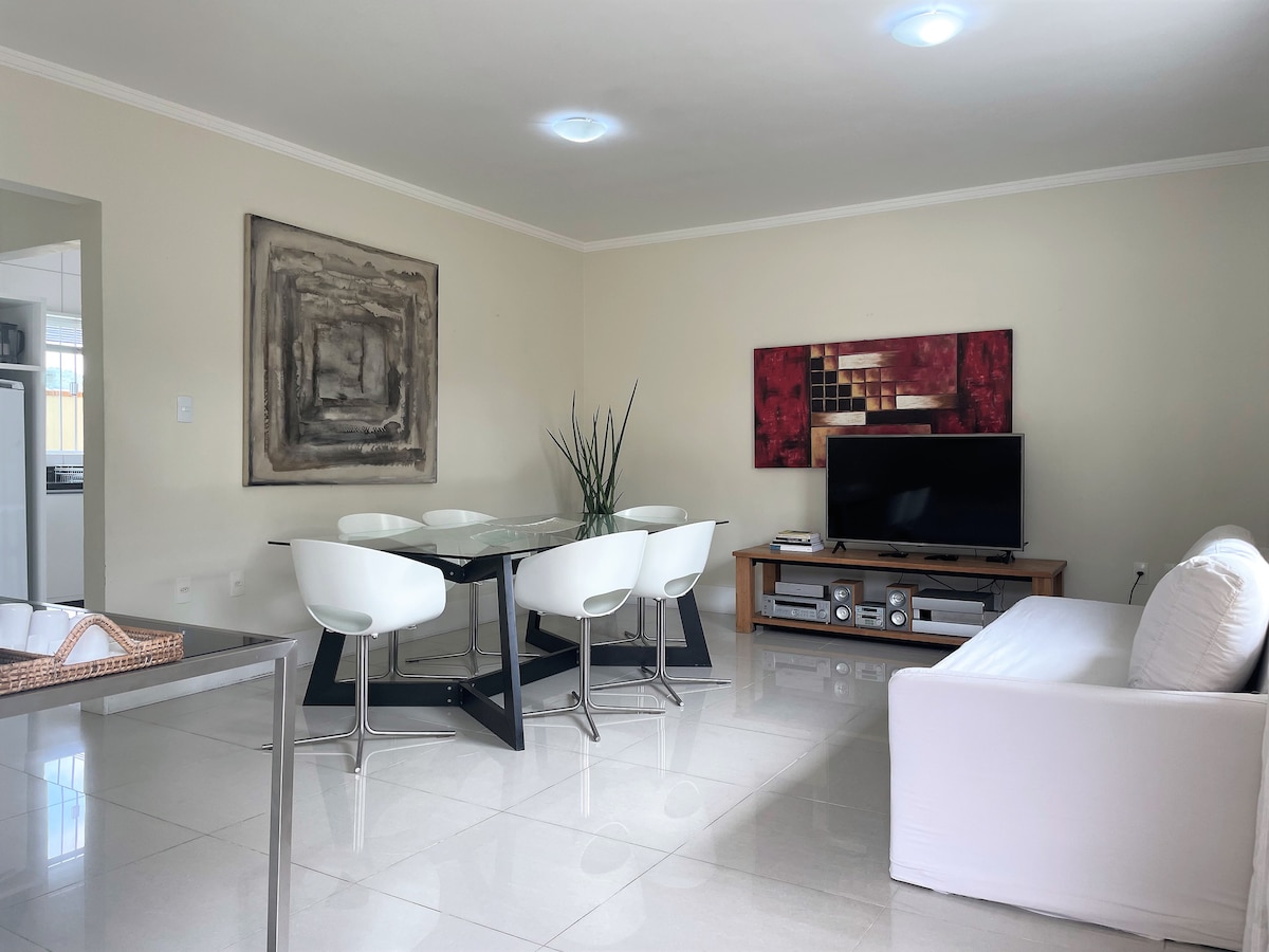 Spacious loft with easy access to BR101 and the bus station. Located in Anita Garibaldi, Joinville. Just minutes from the gastronomic area and city center. - 600mb Fiber Optic WiFi - Space for a home office - Fully equipped kitchen - 11kg washer and dryer, iron and ironing board - Practical and secure self check-in 2 people = queen bed 4 people = queen bed + double sofa bed 6 people = queen bed + double sofa bed + 2 extra beds.