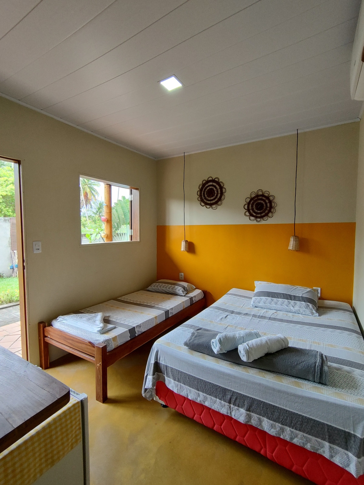 Pé na Areia! Espaço terreo de Pousada, assim distribuído: 01 Apartamento com cozinha compacta, sala-de-estar e 01 quarto triplo (com ar) +01 suíte tripla (com ar) +01 Suíte Família (o1 quarto triplo com ar + 01 quarto duplo sem ar). Todas as acomodações varanda de Frente para o Mar, ar-condicionado e TV, com vista privilegiada do amanhecer. Opcional (não incluído): limpeza diária e café-da-manhã.