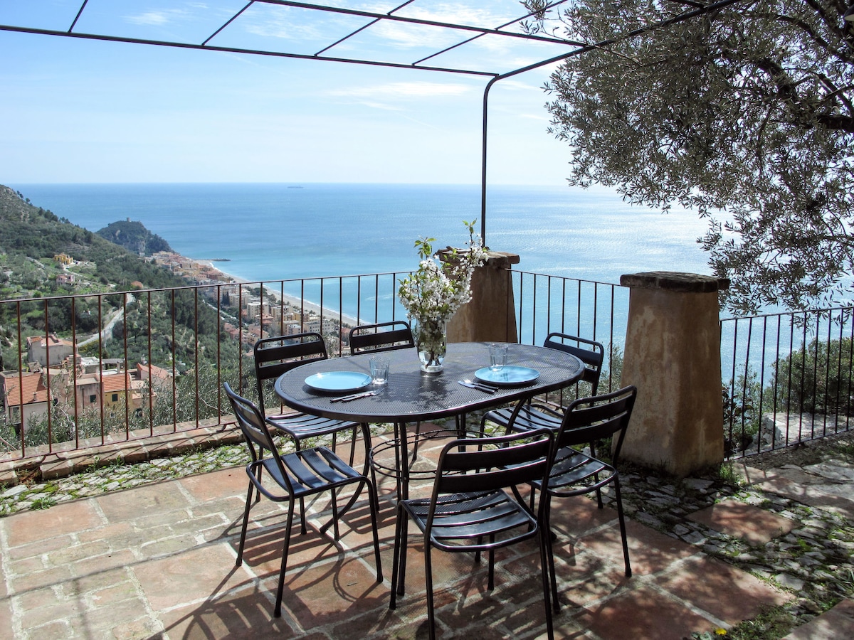Una tipica casa ligure sulla prima collina, affacciata sul mare, circondata da un grande giardino terrazzato con ulivi e alberi da frutto. Un'oasi di pace a 5 minuti a piedi dalle spiagge e dal paese. L'ingresso, indipendente, avviene dal giardino. L'appartamento appena ristrutturato si compone di un soggiorno con angolo cucina e zona pranzo e, separati, due divani letto singoli. Da un disimpegno si accede al bagno con doccia e alla camera con letto matrimoniale ed accesso diretto al giardino