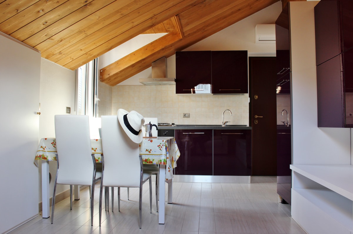 High-end apartment with private parking and huge terrace. A short 5/10-minute walk to the beach, the train station, and the city center. Outdoor staircase opens into an exquisitely furnished apartment with exposed wooden roof and hardwood floors, state-of-the-art kitchen, and central air conditioning. Master bedroom has an en suite bathroom with shower and bath. Living and dining areas are appointed with modern furniture. The layout makes it perfect for two couples or a family of four.